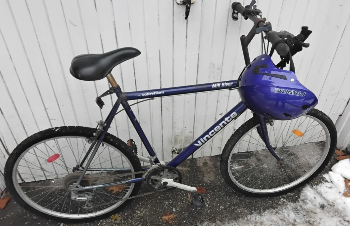 👉The bicycle in the image is a Vincente model mountain bike, which features "Mill River" and "columbium" labeling on the frame.
