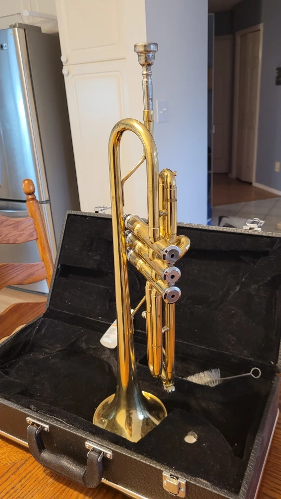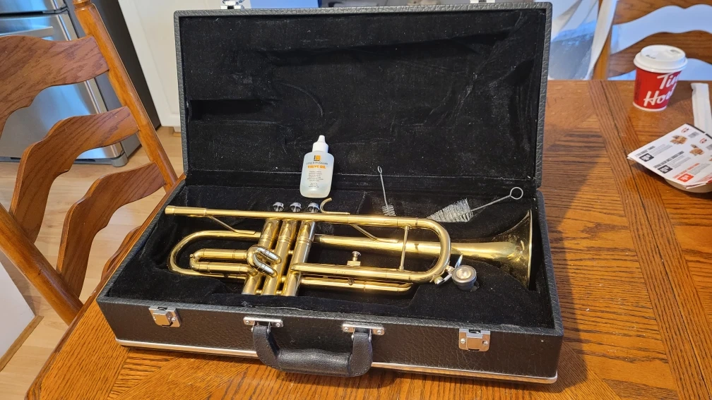 Brand & Model: Ritmüller trumpet (see logo on bell) Condition: Gently used, well-maintained — valves move smoothly, slides are clean, and it comes with its original case, valve oil, and cleaning brush. Features: Brass body, lacquer finish, standard Bb tuning (assumed for student model), comes with cleaning kit. History: From a smoke-free home; hasn’t been dented or abused. Played a few times, but mostly stored. Extras: Includes cleaning materials (brush, valve oil), and a basic hard case. Why Sell: No longer used, looking for someone to give it a good home — ideal for a beginner or someone wanting a backup horn.
