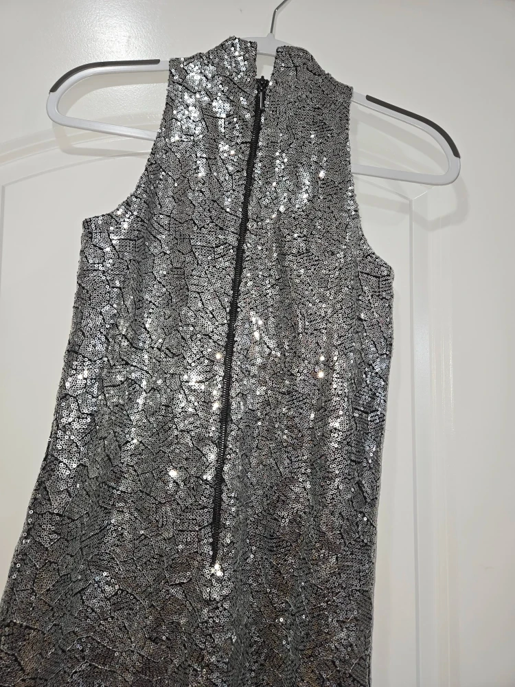 Here's a sparkly ELLE RW&CO dress! It's covered in sequins and perfect for a night out or Christmas Party. The dress is a size XXS.