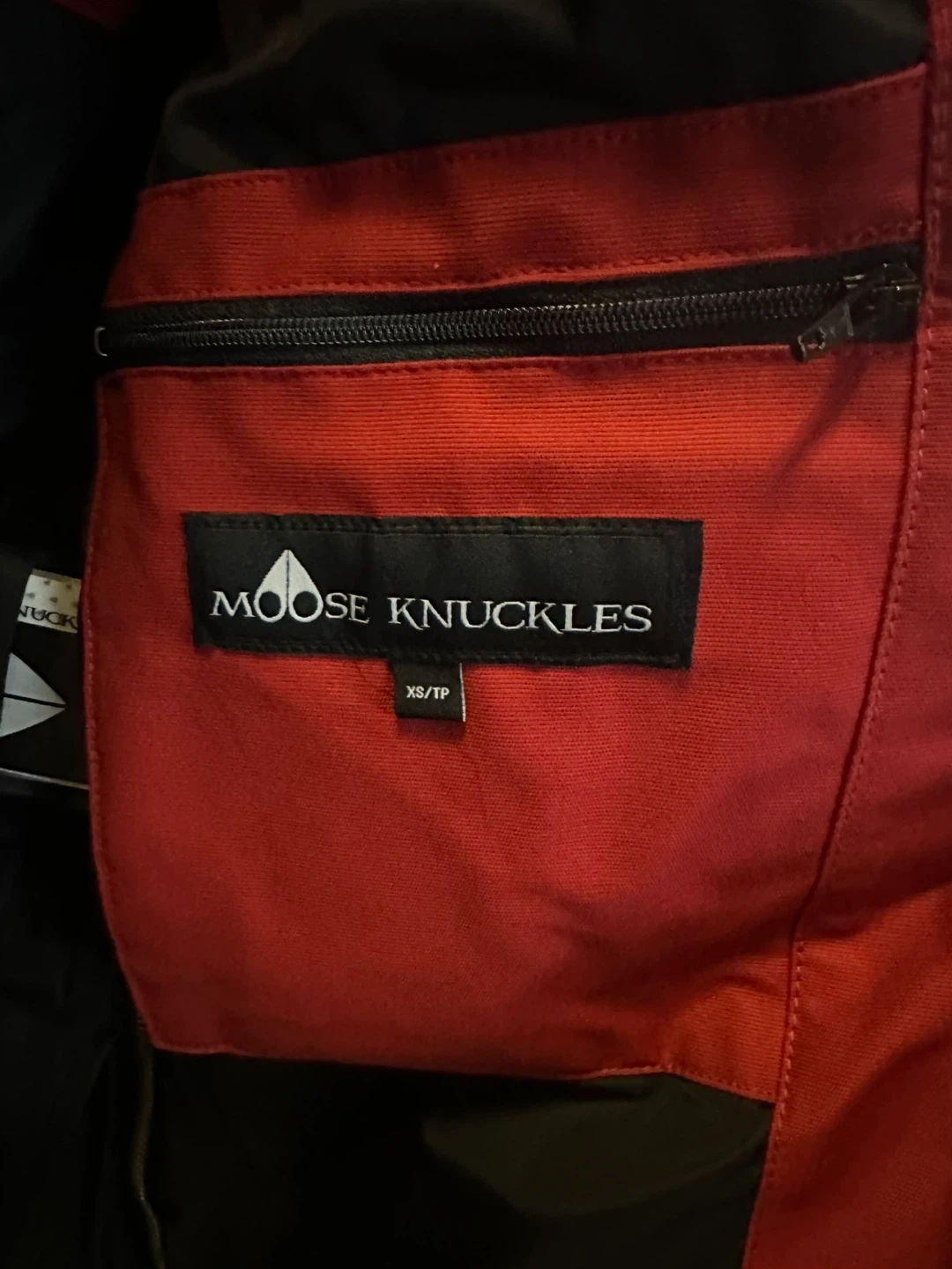 Selling a red Moose Knuckles down-filled jacket. It's in great condition and ready to keep you warm this winter! The jacket features a stylish design with a fur-trimmed hood.