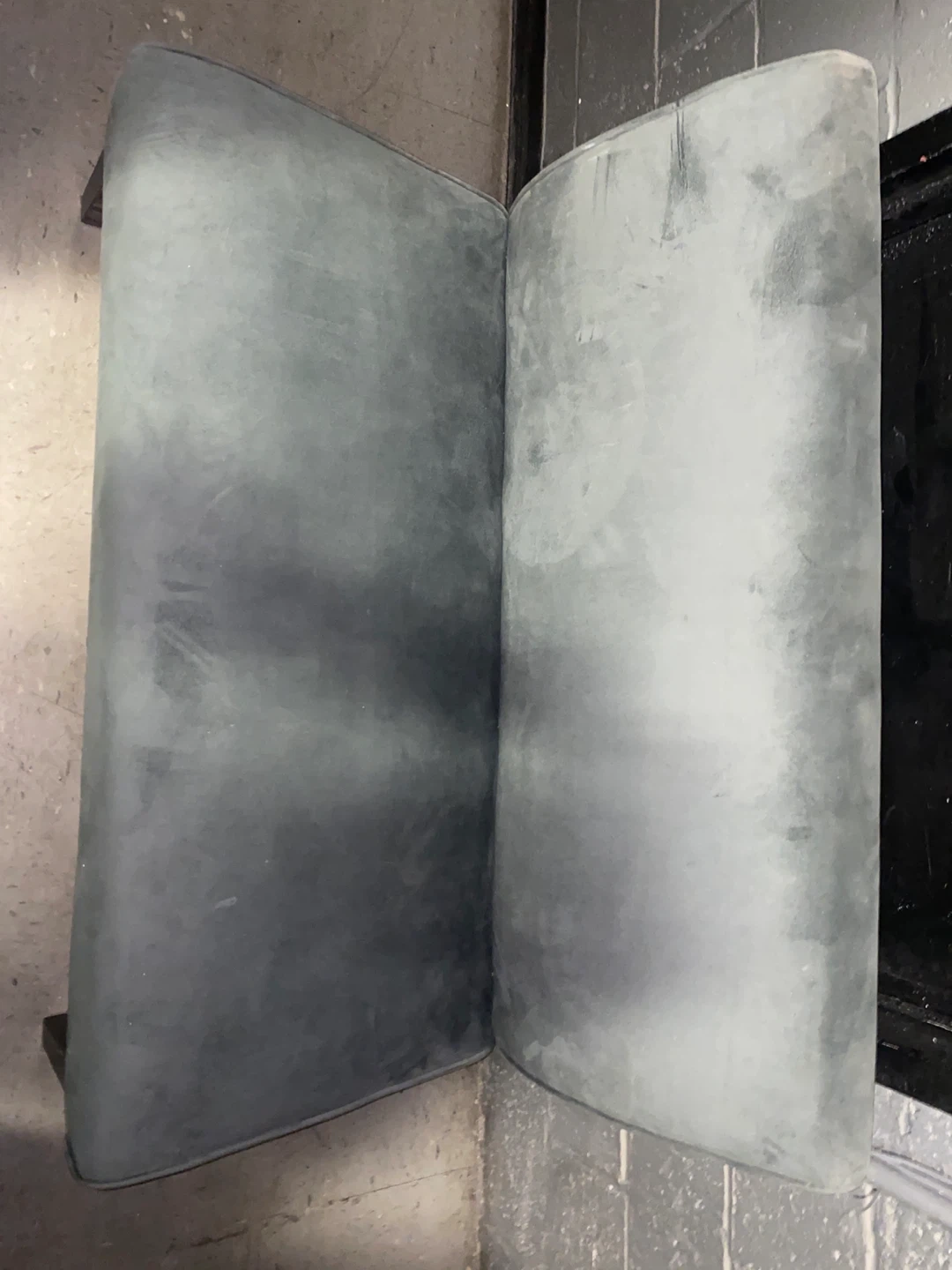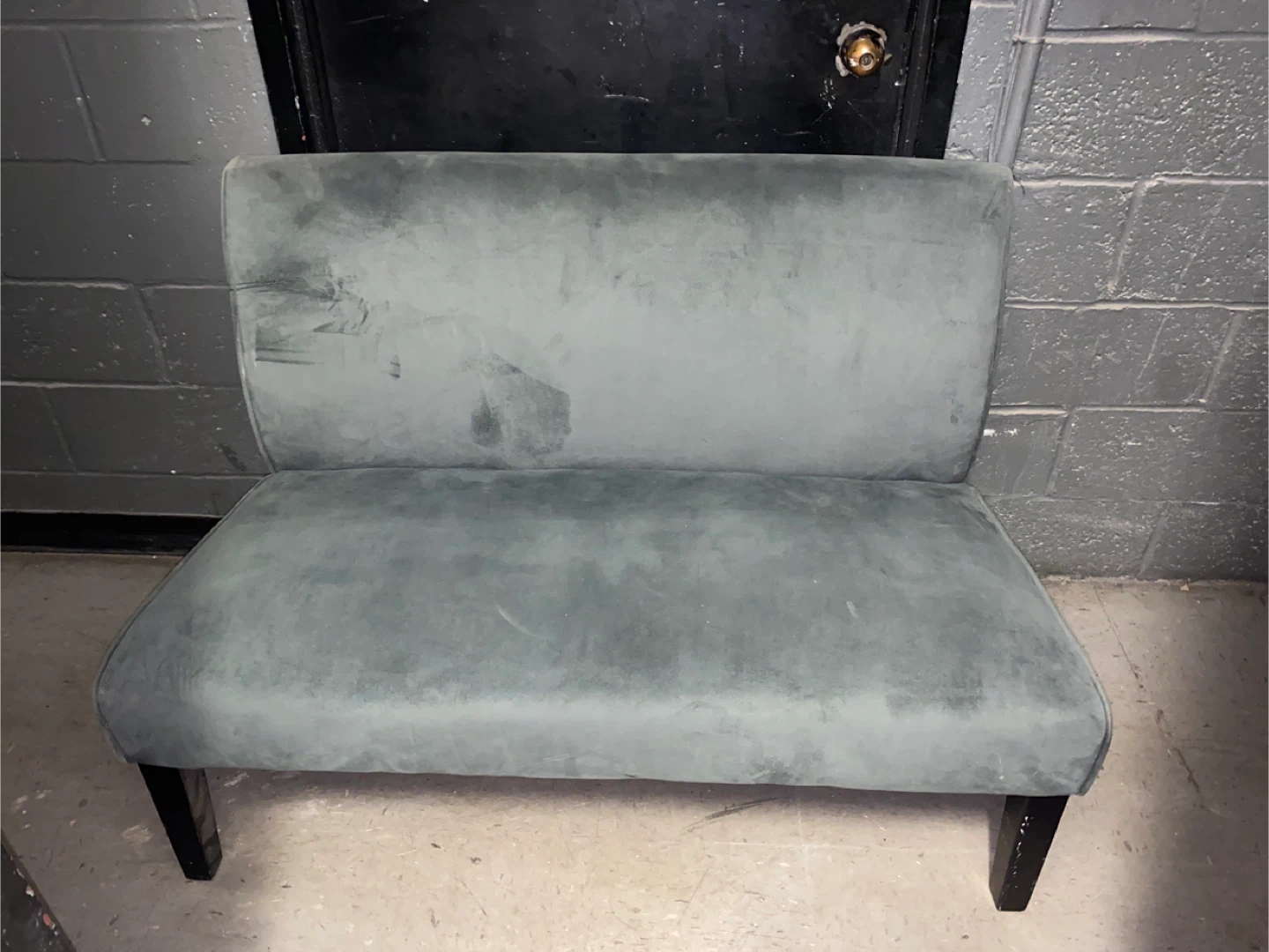 Selling a gray loveseat settee. It's a lovely piece of furniture that would look great in any home. The color is a nice neutral gray, and the material feels soft and comfortable.