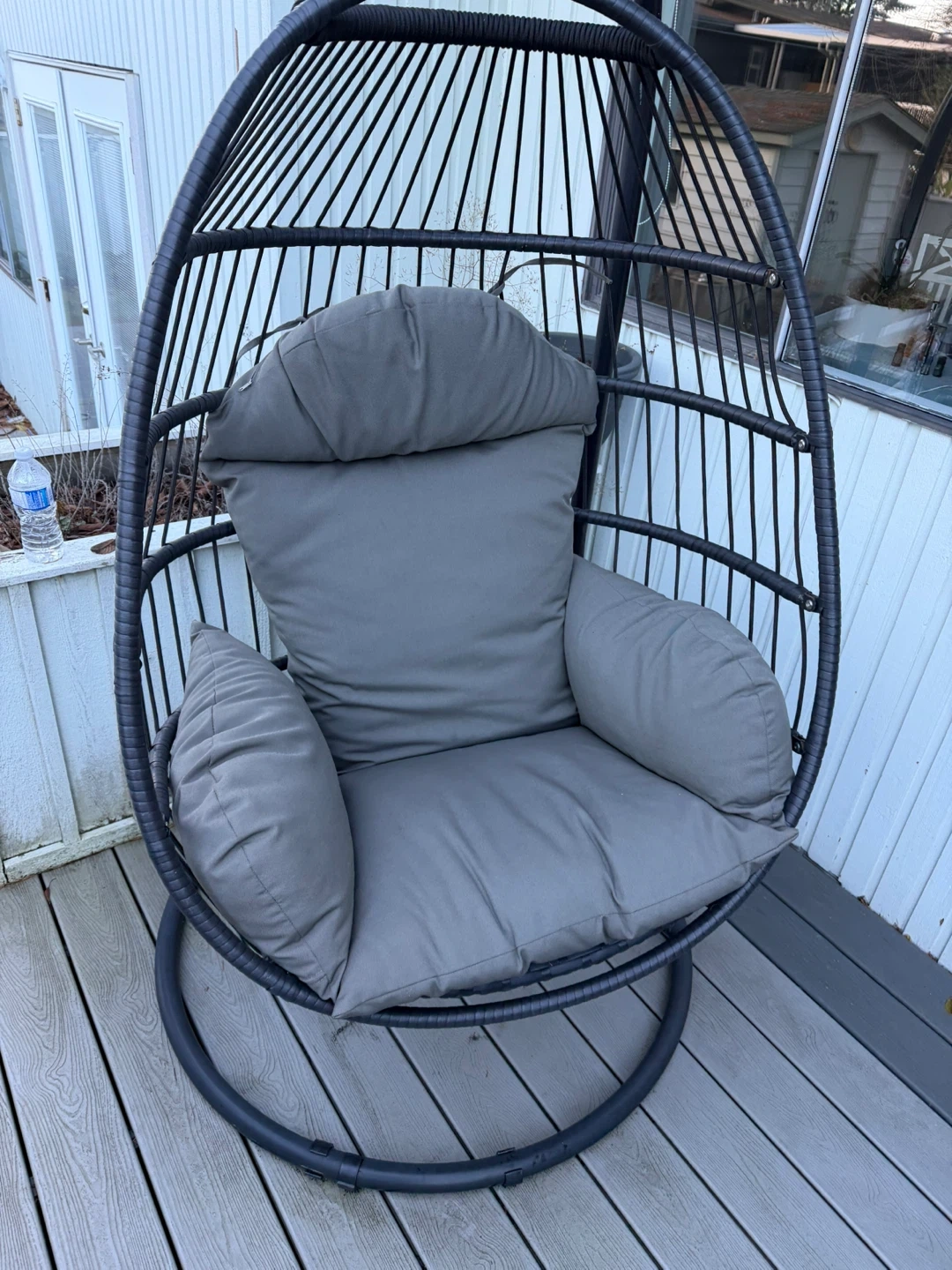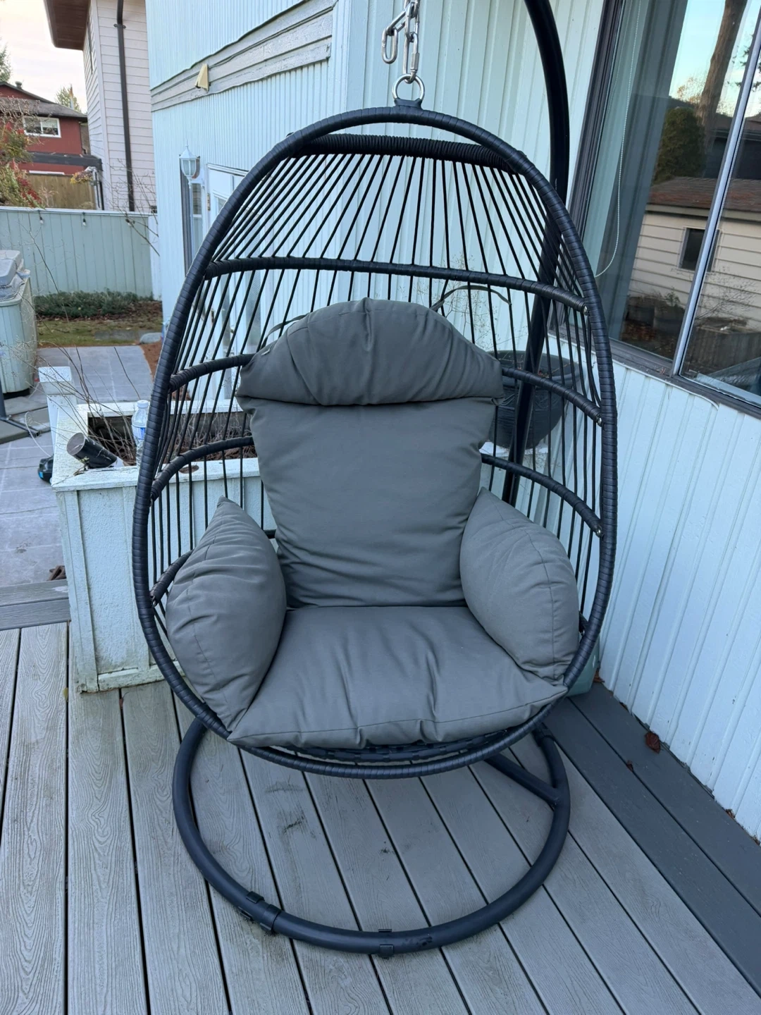 Looking to sell my hanging egg chair! It's super comfy and a great addition to any patio or indoor space. The cushions are in great shape and the chair is very sturdy. Perfect for relaxing and enjoying the weather!