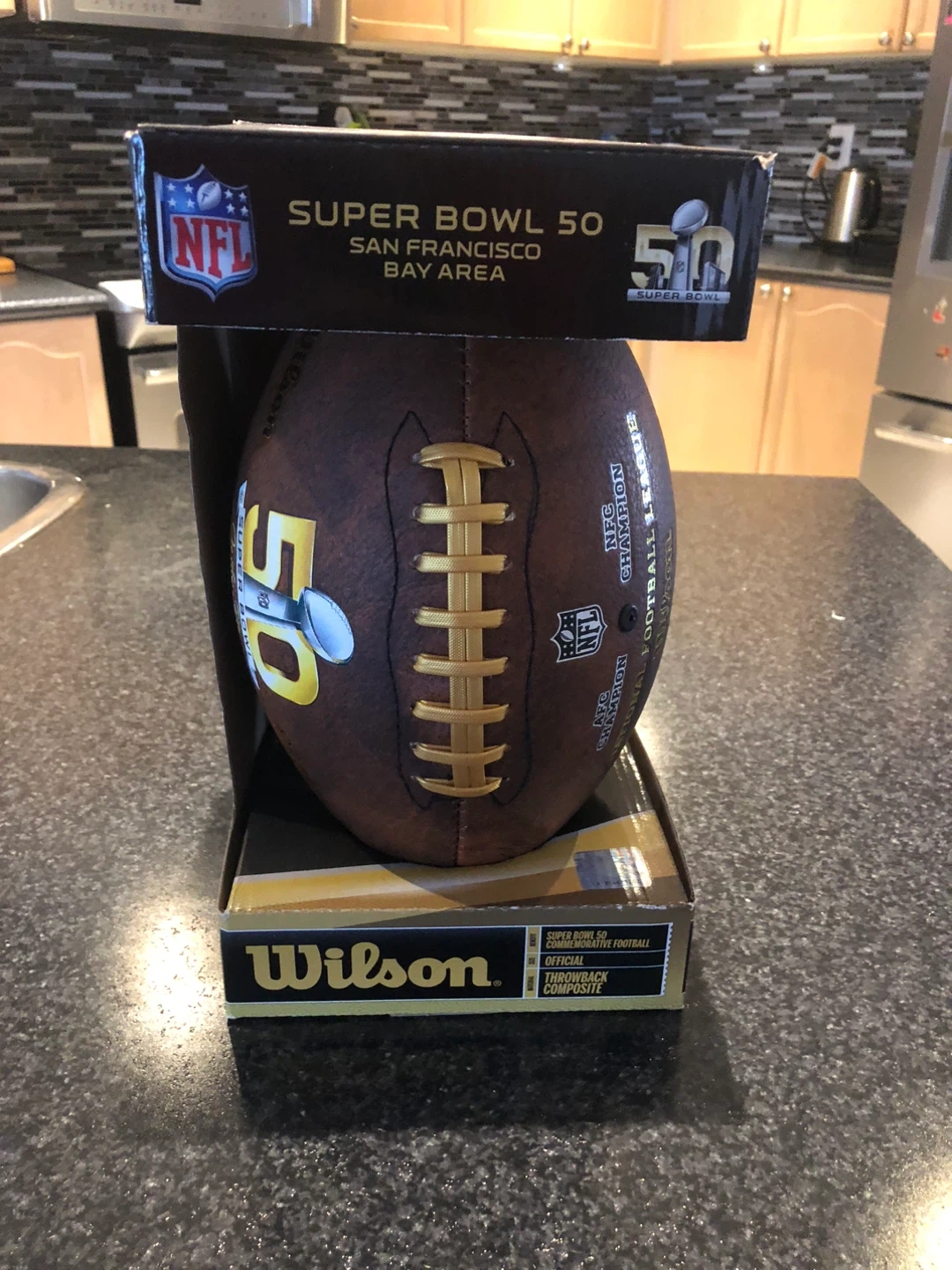 Buy & SellWilson NFL Super Bowl 50 FootballWilson NFL Super Bowl 50 Football$35Selling a Wilson NFL Super Bowl 50 football, still in its original box! This is a great collectible item for any football fan0 chats·0 favorites·3 viewsSELLERMariaBolton310 reviewsWHERE TO MEETShoppers Drug Mart