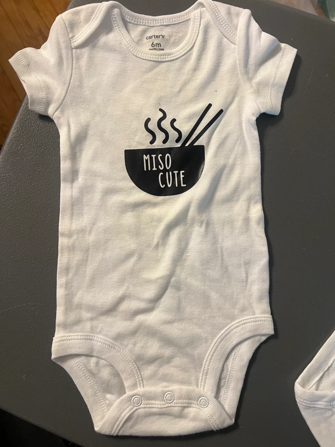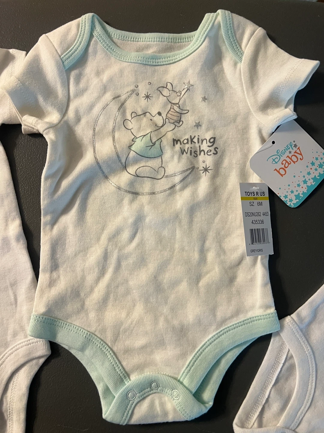 Selling a bundle of baby bodysuits in sizes 6M and 12M! There's a Disney Winnie the Pooh bodysuit, a 'Miso Cute' bodysuit, and a 'We The North' bodysuit. Perfect for your little one! Items are brand new. Items come from a pet and smoke free home. Port Union/401/Pickering for pick up. Note the price is for all three together.
