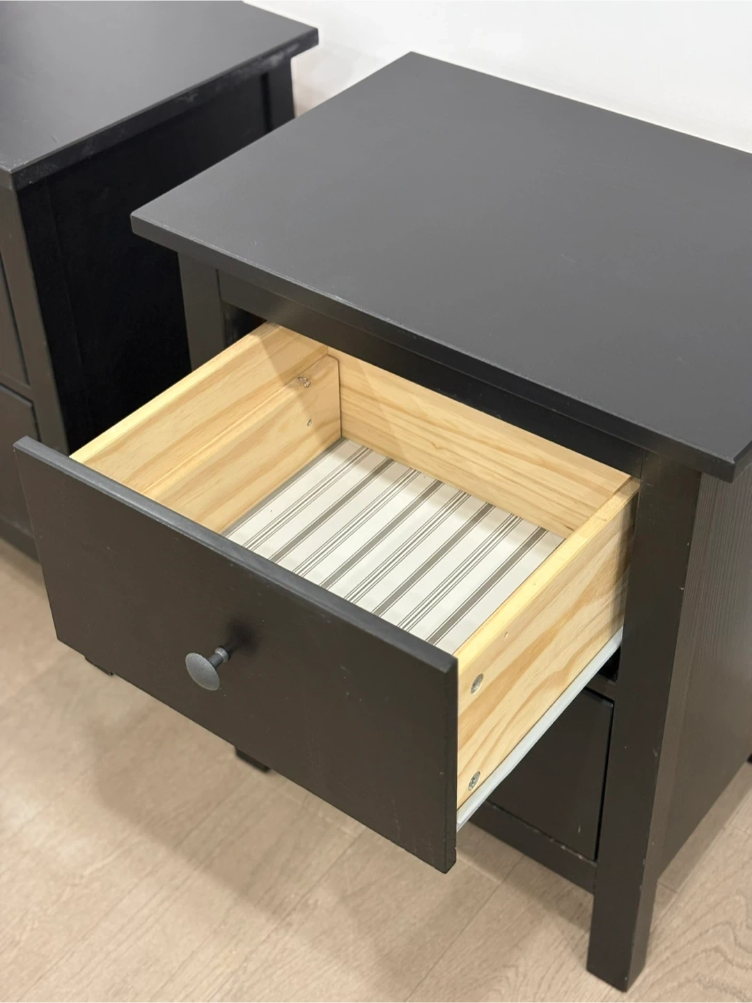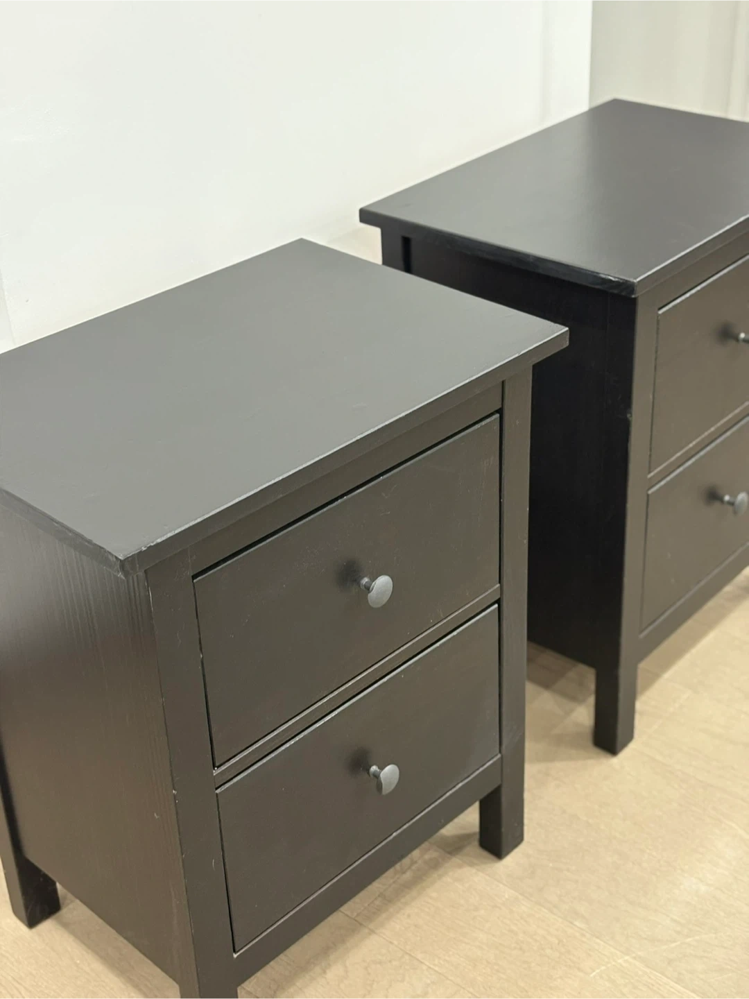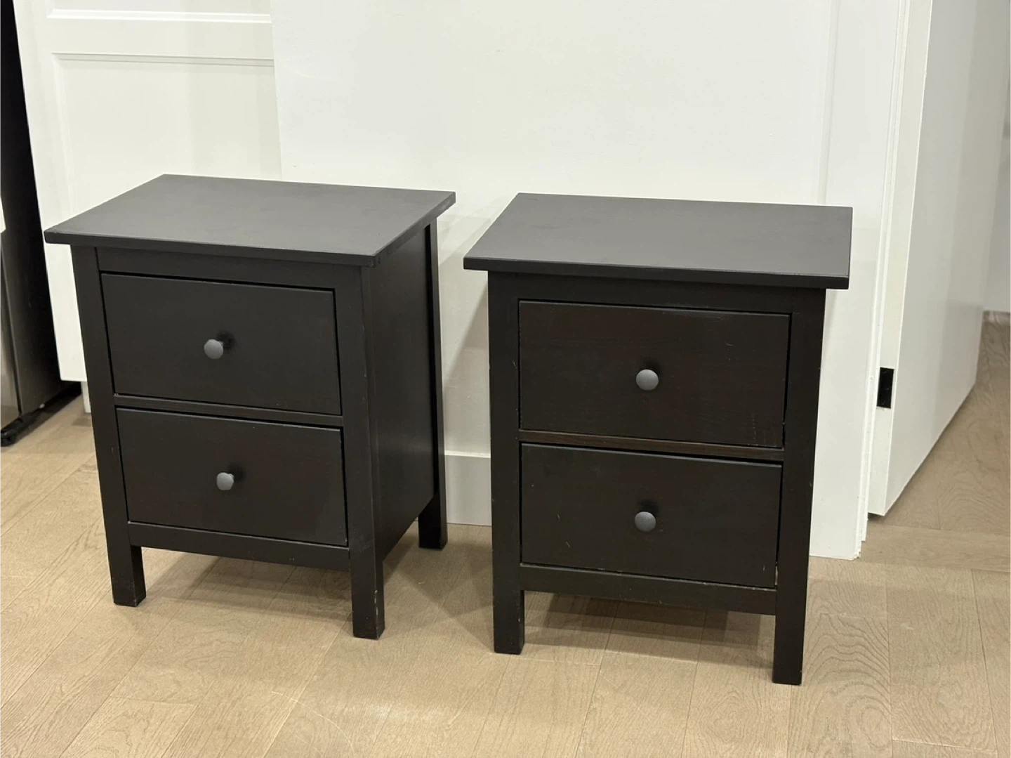 Selling a set of two nightstands! They each have two drawers for storage. One is brown and the other is black. They are in good condition and ready for a new home!