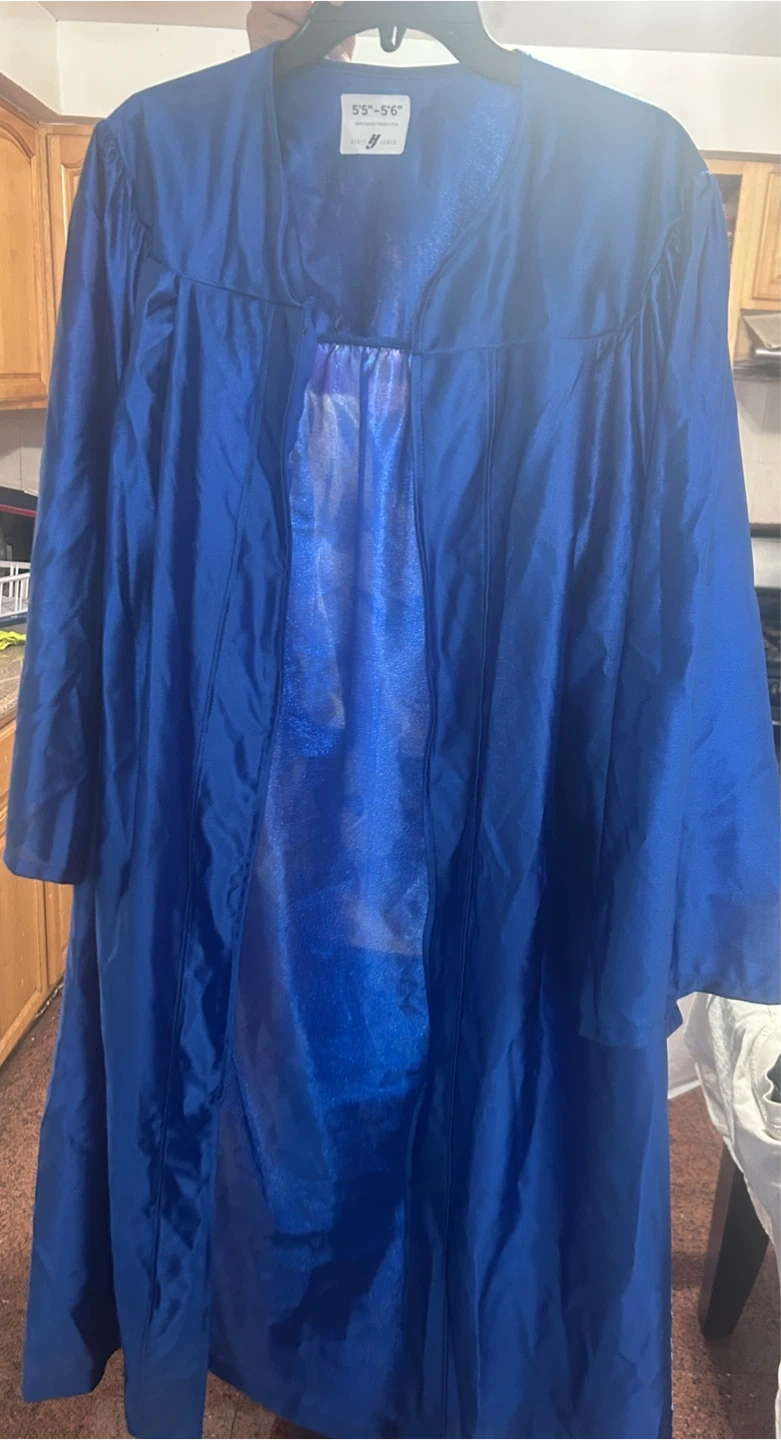Giving away 3 blue graduation gowns. The gown is made of 100% polyester All 3 different heights. Take 1 or all 3. All elementary and middle schools in New York City use this color this company All 3 brand new never worn. All 3 comes with hat and tassel. The height measurements are 1. 4’8” - 5’4” 2. 5’4” - 5’6” 3. 5’9” - 5’11”