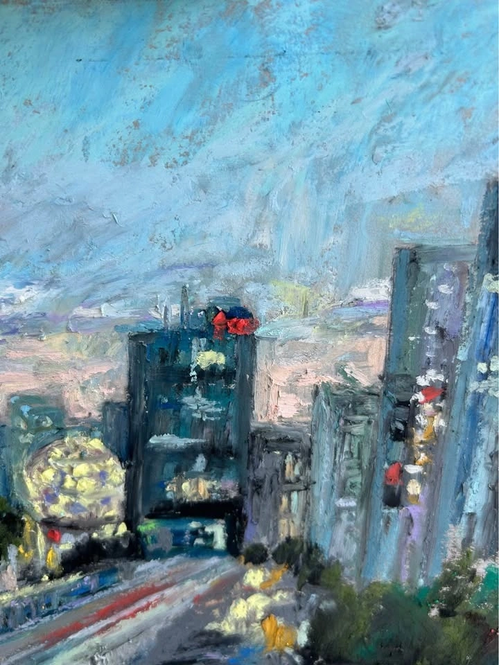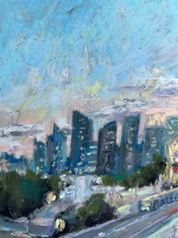 This is an original oil pastel painting. It will be handed over to you unframed, protected with glassine paper between two cardboards.