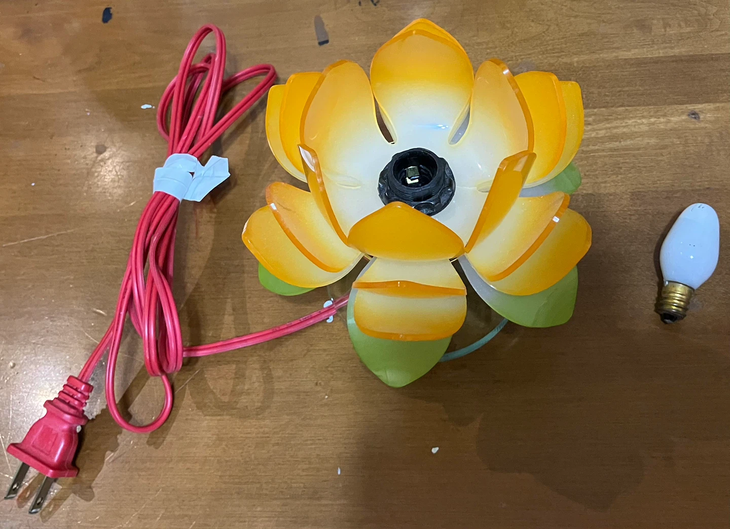 Make offers/Cash only/public meet up - Selling a cute lotus flower table lamp! It has yellow, green, and red accents and would look great in any room