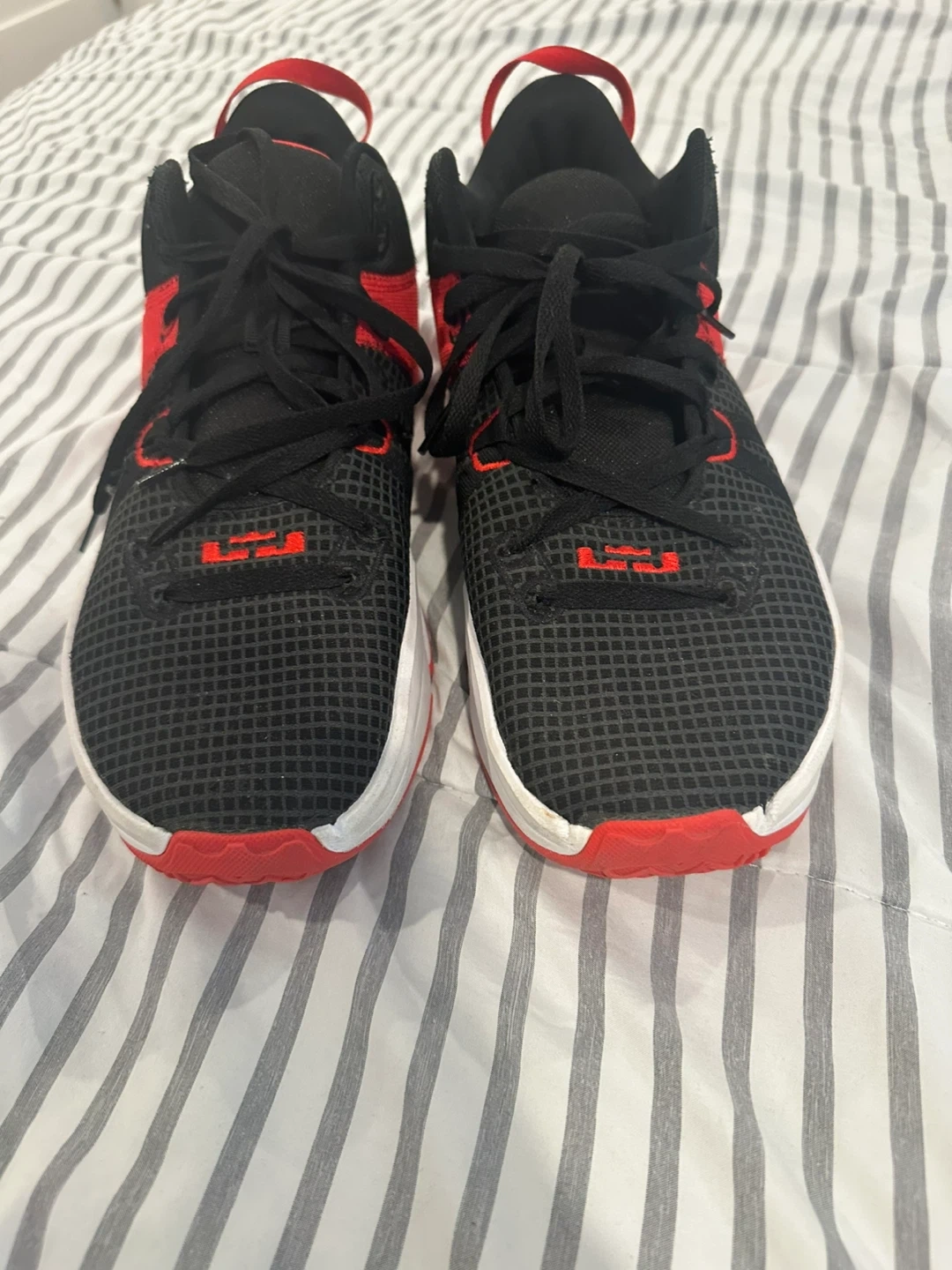 Selling a pair of Nike LeBron Witness VII basketball shoes in black and red. Still great I just grew out of them