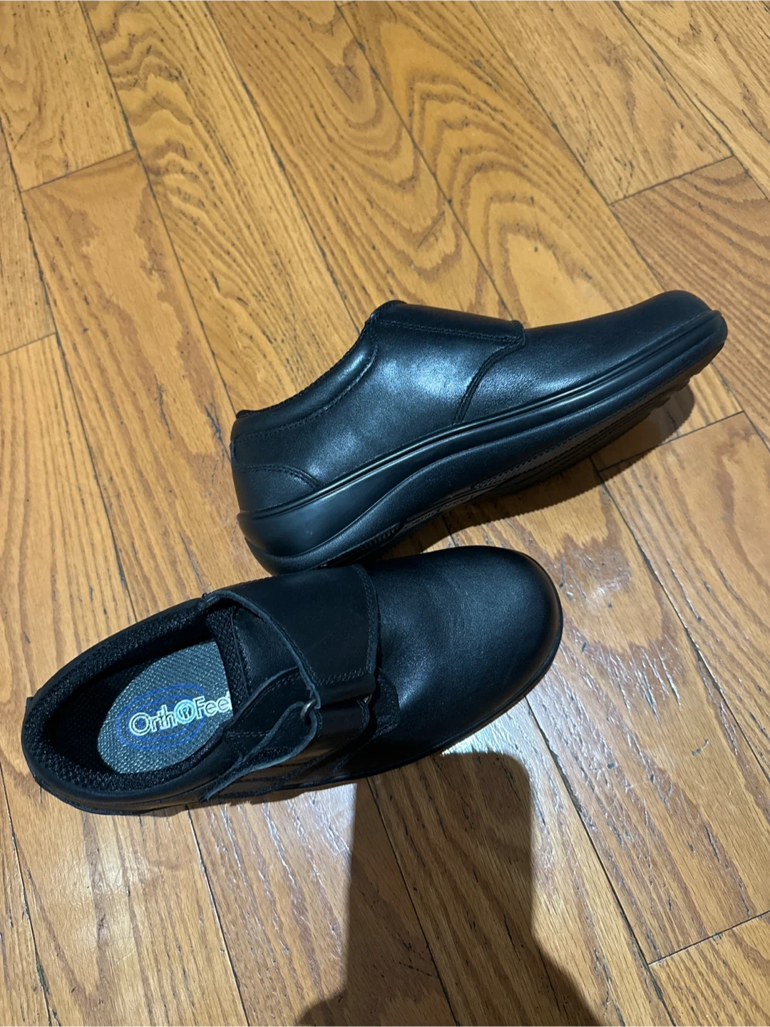 Selling a pair of OrthoFeet shoes in black leather. Orthopedic and comfortable.