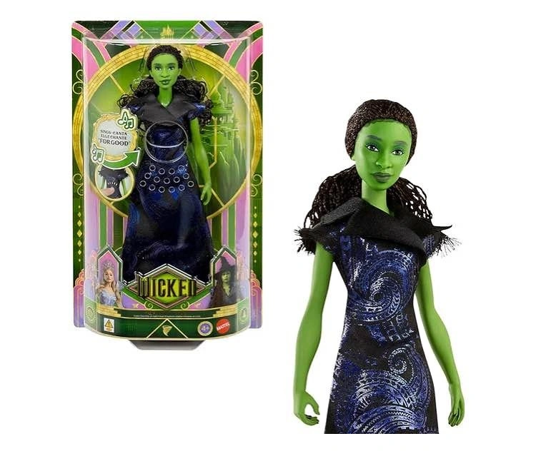 Mattel ‘Wicked: for Good Singing Elphaba Fashion Doll, Inspired by The Movie, Sings “for Good”. Press the button on her torso to hear a clip from the English version of the song “For Good.” Elphaba doll dazzles in a true-to-movie sleeveless, floor length dress with her long, braided hair and iconic green skin for endless playing and displaying! Recreate movie moments again and again with Elphaba doll’s 5 points of articulation. Kids ages 4 years and older can play out thrillfying stories from the Wicked movies.