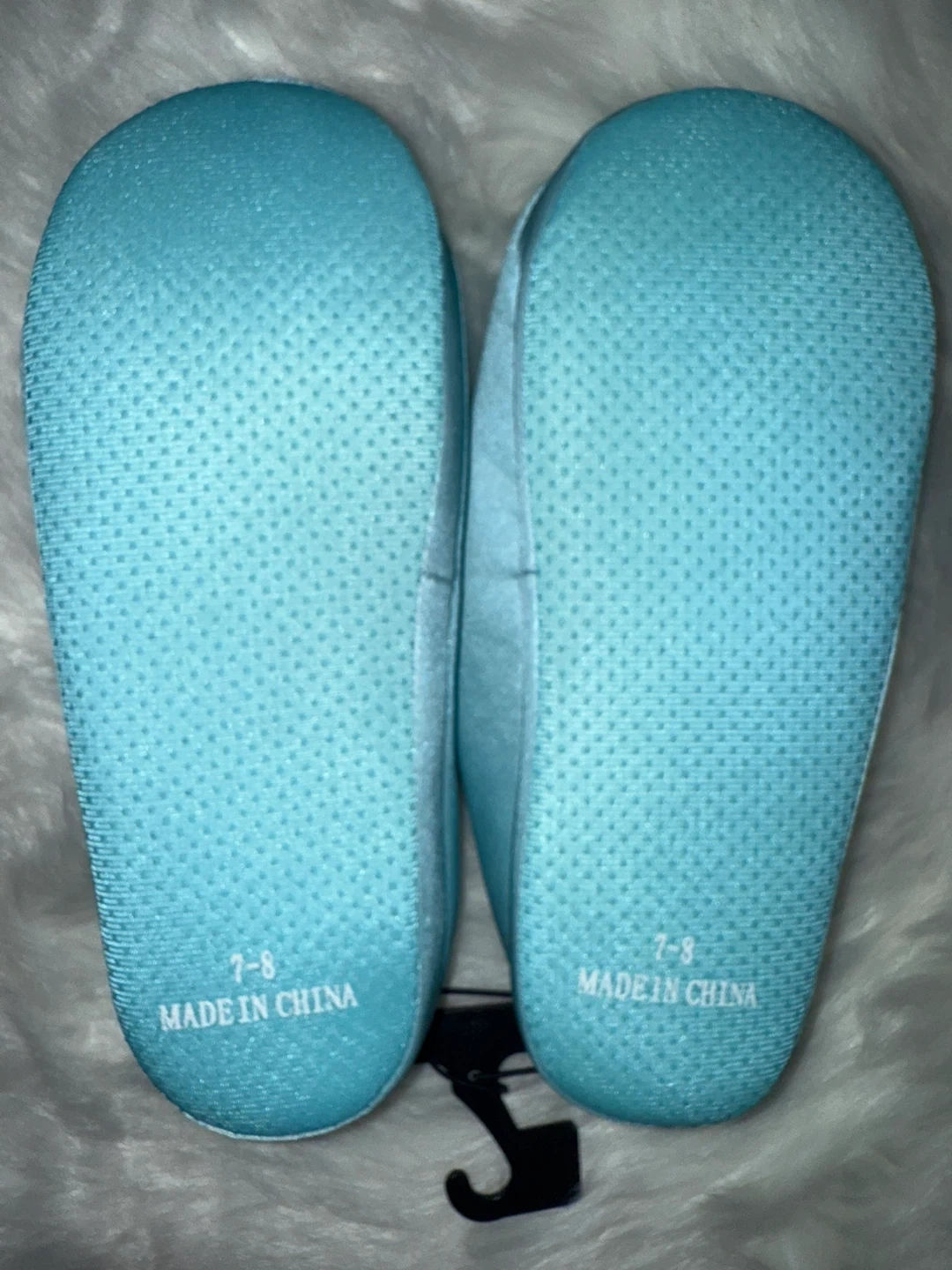 These adorable Hello Kitty slippers are brand new with tags! They're a size 7/8 and feature a cute Hello Kitty design in a snow globe. Perfect for keeping your feet cozy!