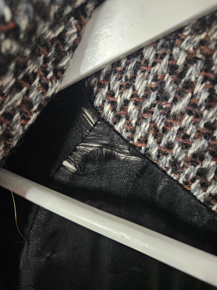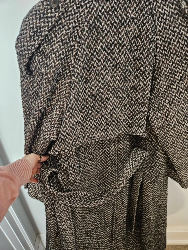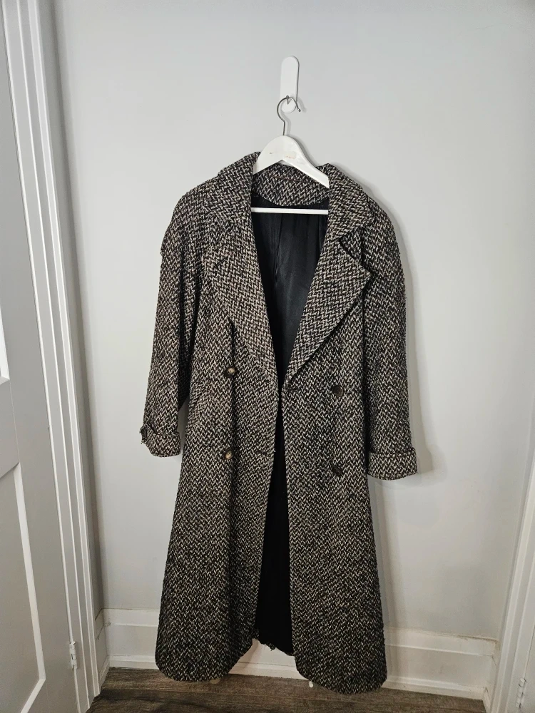 Selling a vintage wool blend coat with a classic subtle pattern. It's a stylish and warm piece for the colder months. There is some wear and tear on the inner lining, but overall the coat is in good condition and ready for a new home. Double breasted. Floor length.