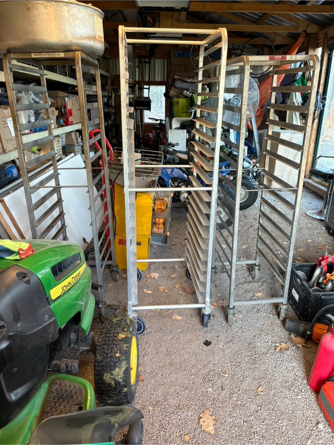 Selling a baking rack from Hatch Industries, along with an Omcan Food Machinery rack. Both are in good working condition and ready to help with your baking needs