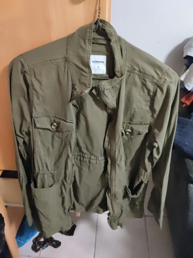 Selling a cute Sonoma jacket in olive green! It's a size medium and in great condition. Perfect for layering or wearing on its own during the warmer months