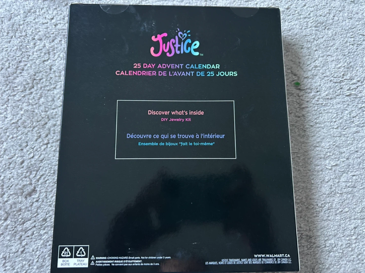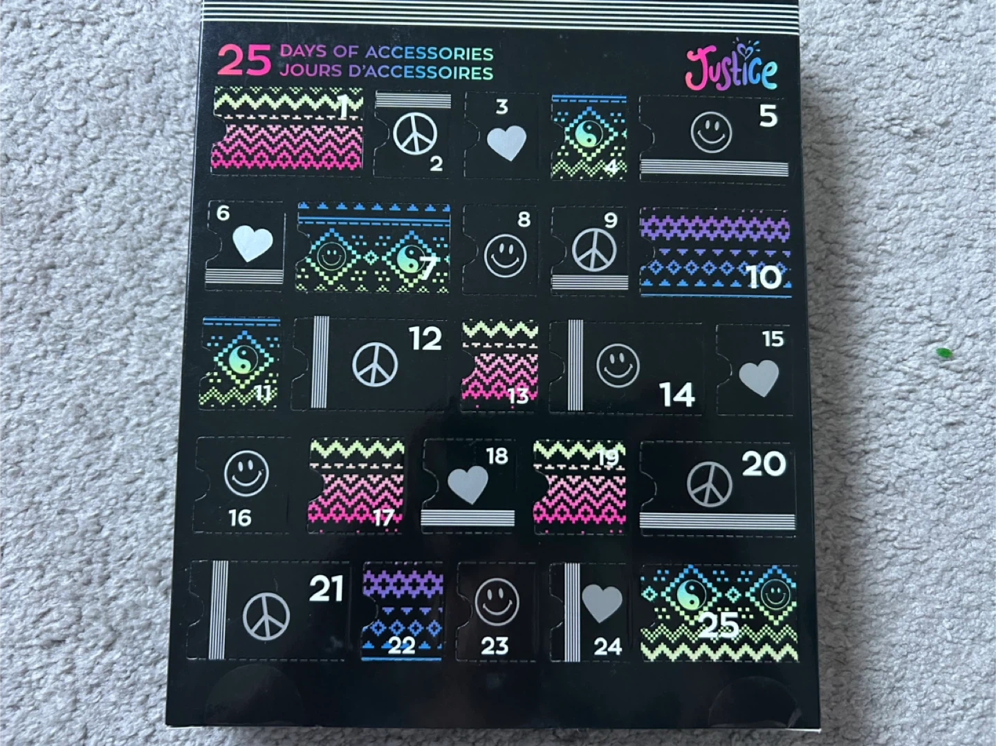 a Justice 25 day advent calendar! It's a DIY jewelry kit, perfect for a fun little project. Discover what's inside each day as you count down!