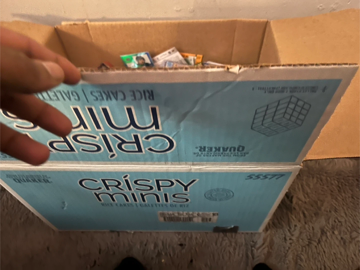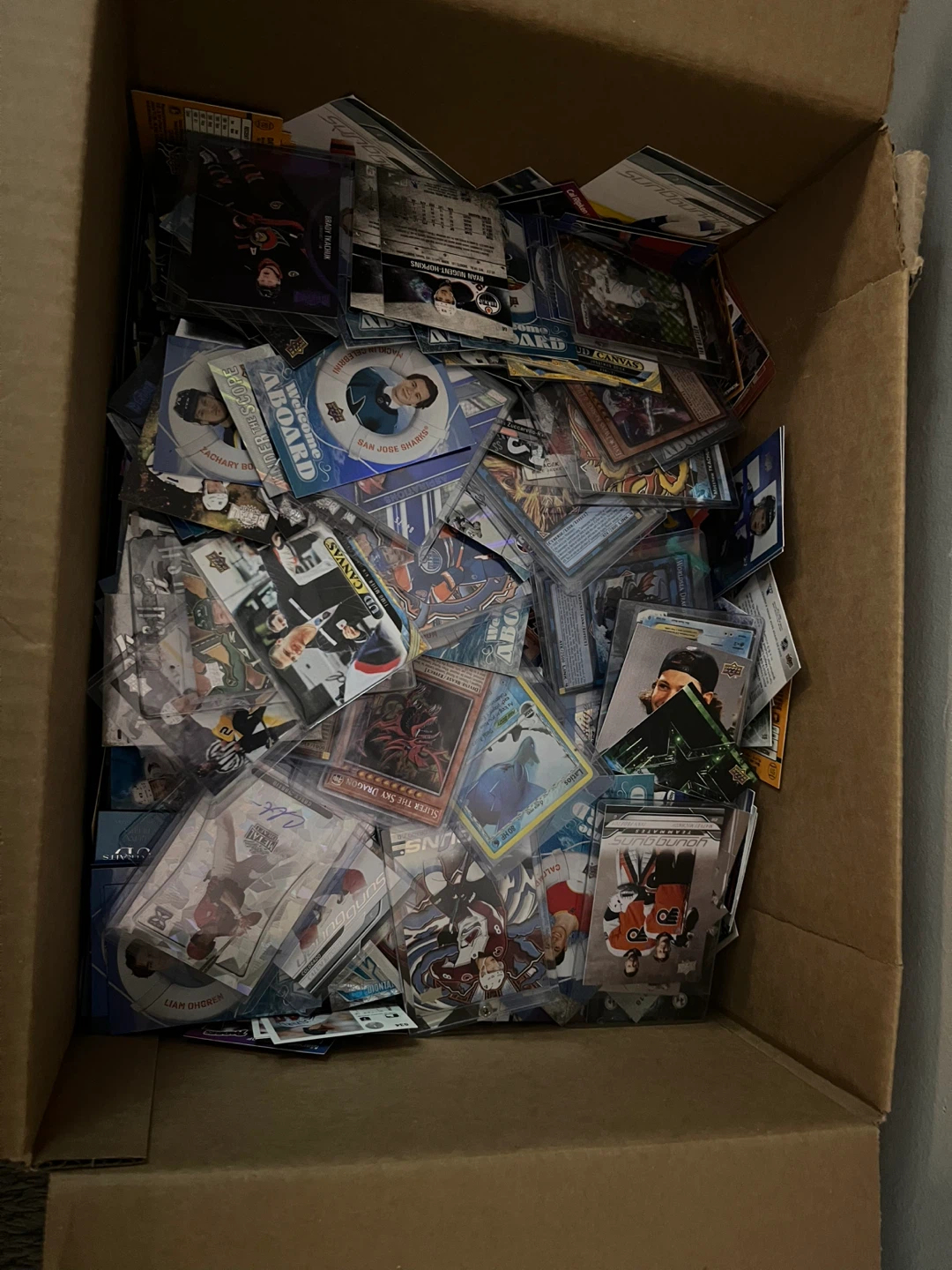 Honestly, I don't know the first thing about these. It looks like a big mix of sports cards (football, baseball, etc.) and a handful of Pokémon cards thrown in there too. I have no idea if there's anything valuable or not. To me, it's just a box of cards that needs to go!