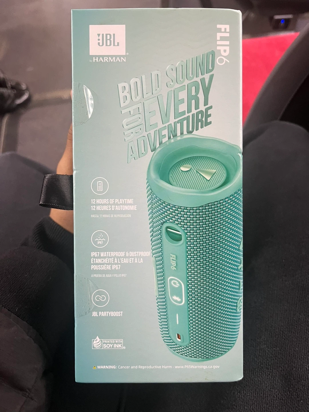 Selling a brand new JBL Flip 6 Bluetooth speaker in a lovely mint green colour! It's still in its original box. This speaker is perfect for any adventure, with its bold sound and waterproof and dustproof design. It also features JBL PartyBoost and has up to 12 hours of playtime. Get ready to enjoy your favourite tunes on the go!