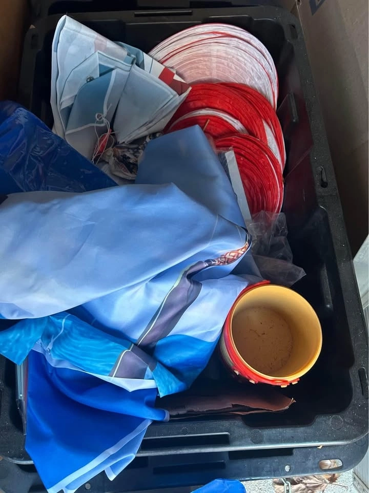 Some new, some used once. Includes photo backdrops, favor boxes, extra favors, bobber planters, miscellaneous centerpiece pieces etc. Tub is full.