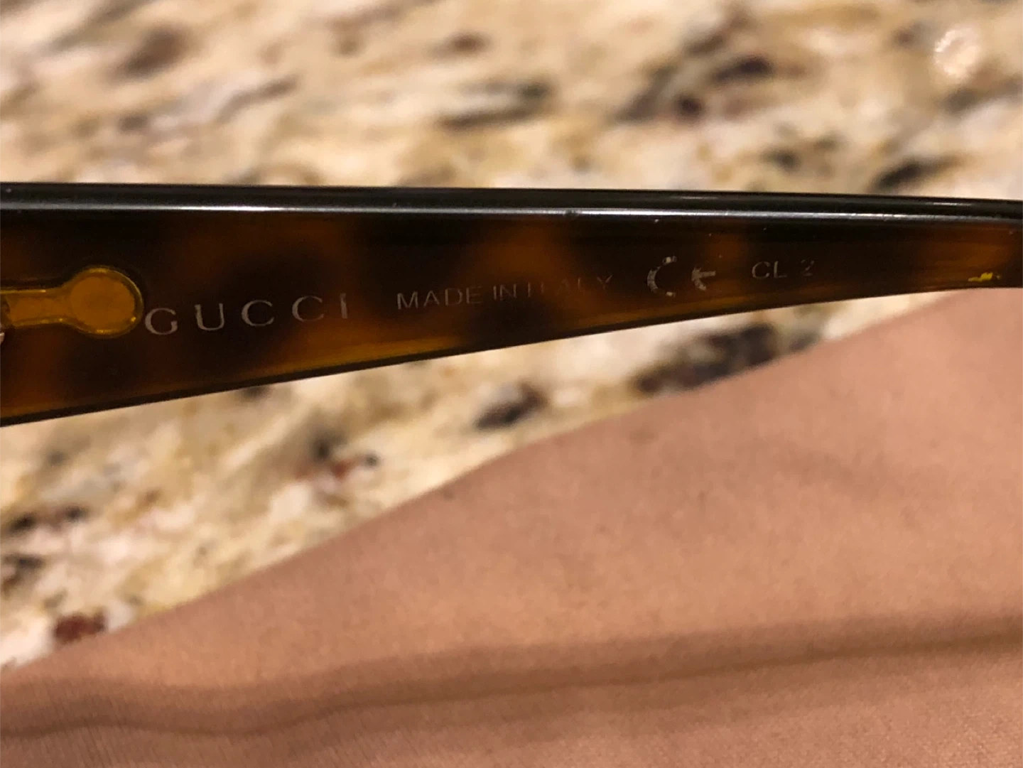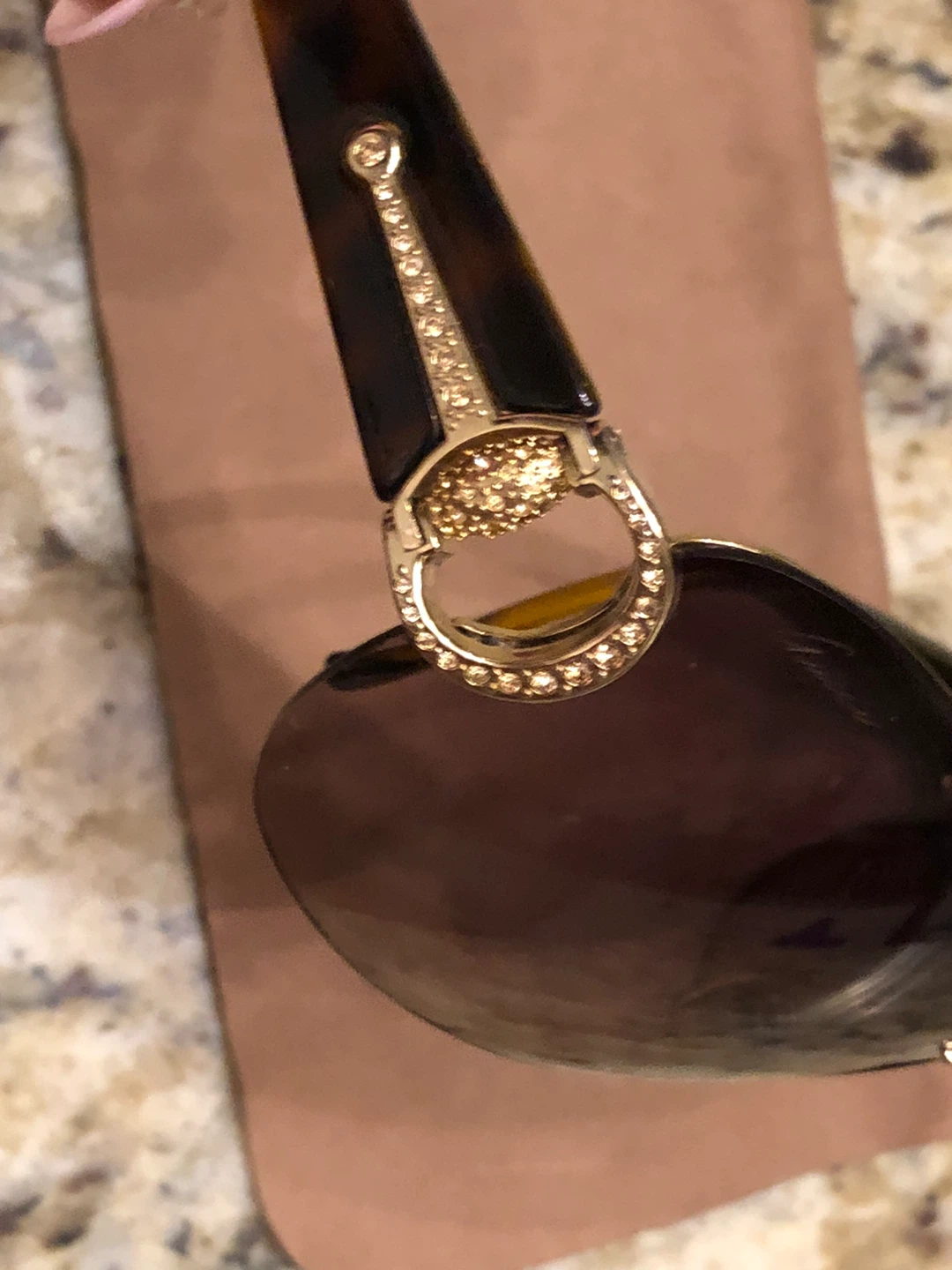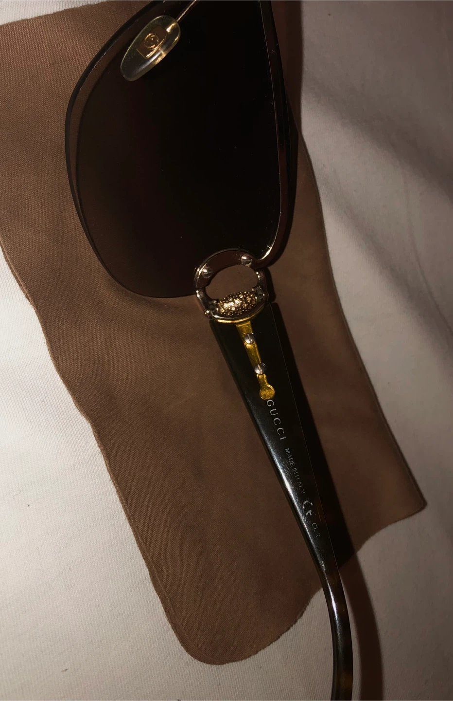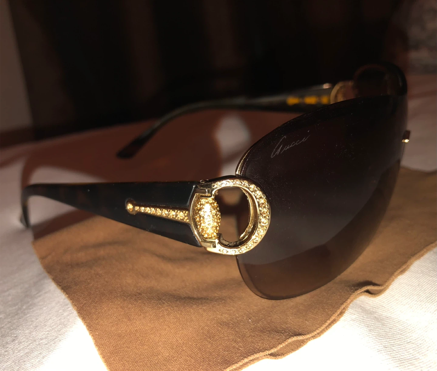Selling a pair of Authentic Gucci sunglasses in excellent condition made in Italy. They have a stylish tortoise shell pattern on the arms and gold detailing with crystals. Perfect for adding a touch of luxury to your look!
