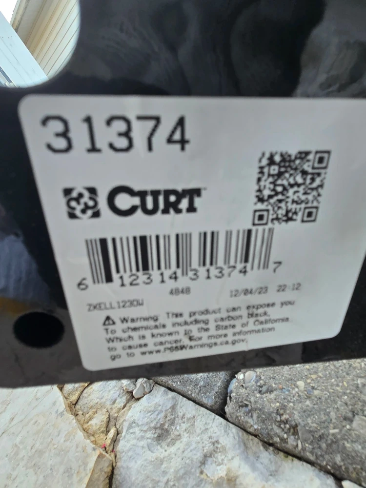 Selling a CURT trailer hitch, model 31374. It is black. It has a maximum trailer weight of 5,000 lbs, a maximum tongue weight of 500 lbs, and a maximum line pull of 9,000 lbs will fit pickup truck