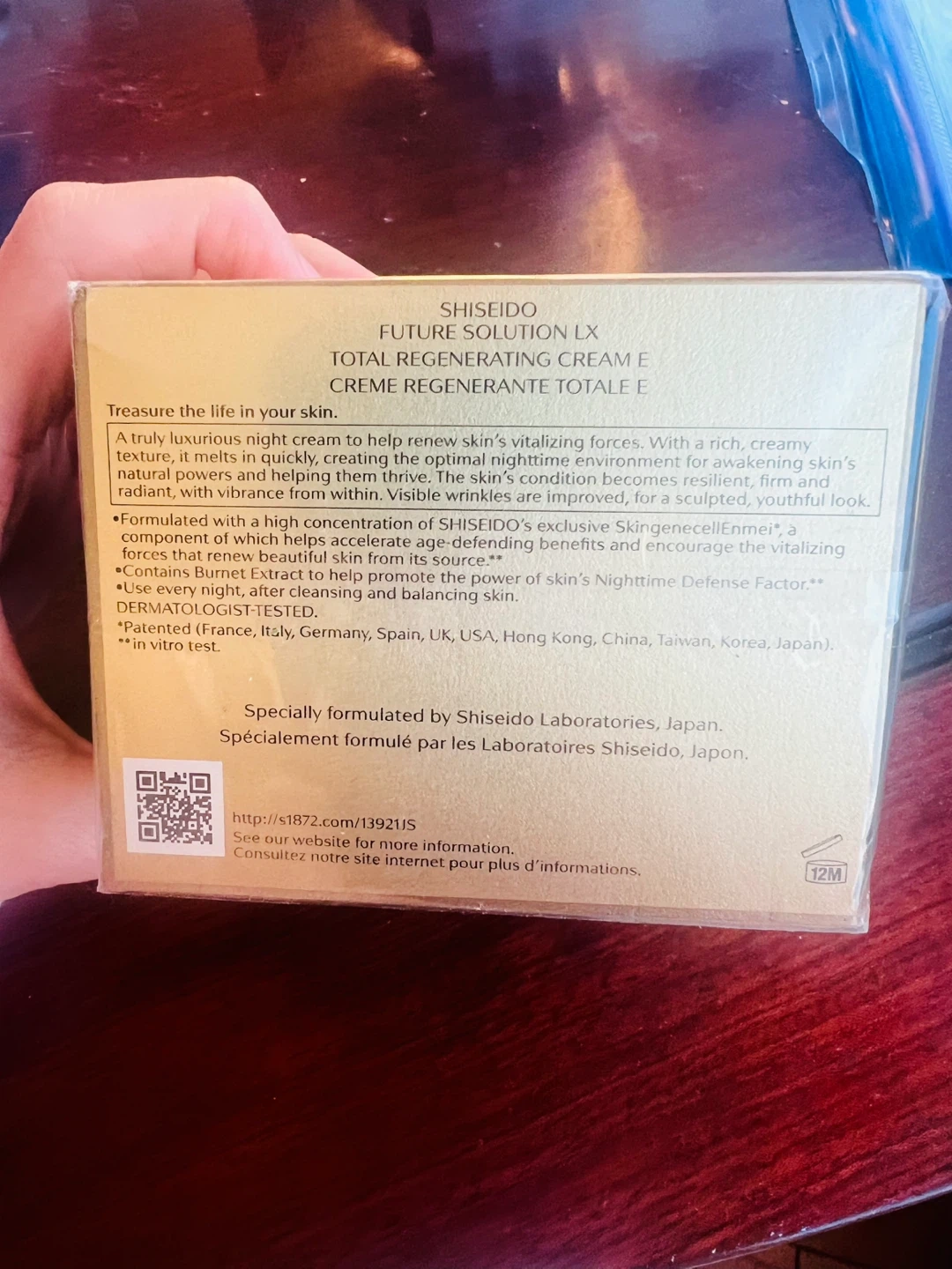 Selling a Shiseido Future Solution LX Total Regenerating Cream. This luxurious cream helps renew skin's vitalizing forces, leaving it feeling resilient, firm, and radiant. It contains a high concentration of Shiseido's exclusive SkingenecellEnmei. Use every night, after cleansing and balancing skin. It's specially formulated by Shiseido Laboratories, Japan. Size is 50ml/1.7oz