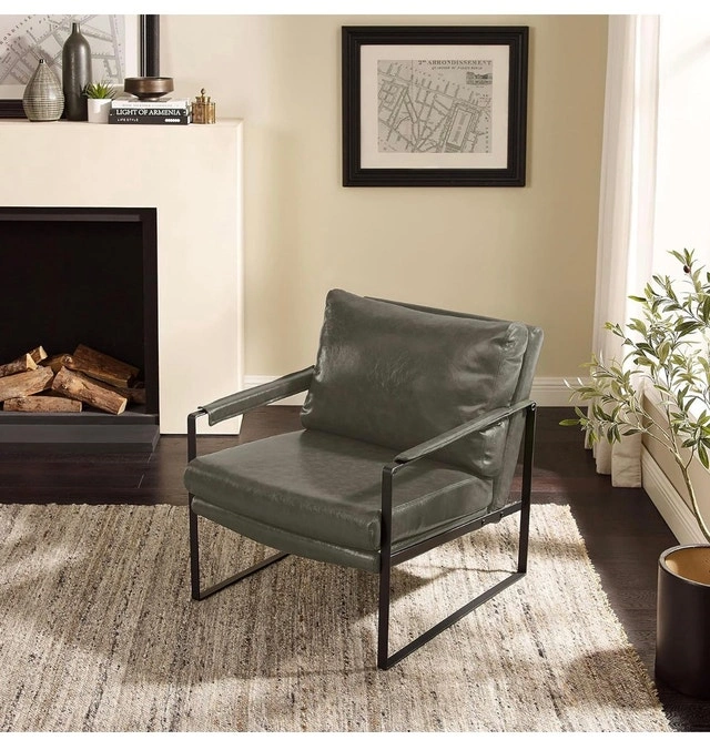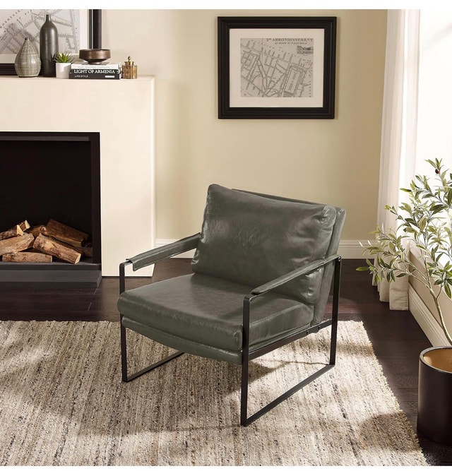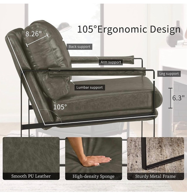 Mid-Century Modern Accent Chair Faux Leather