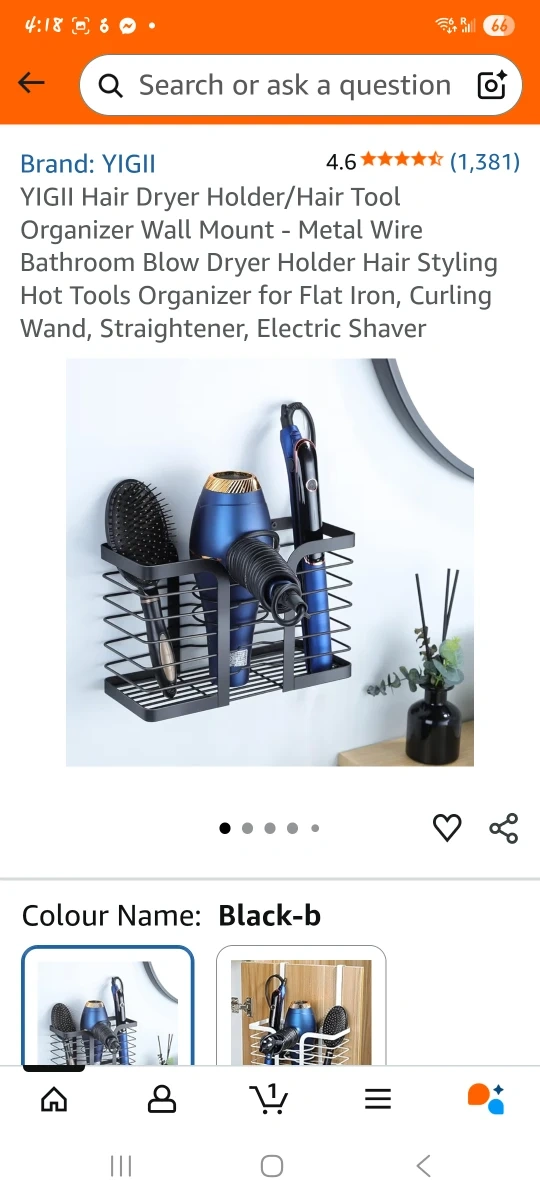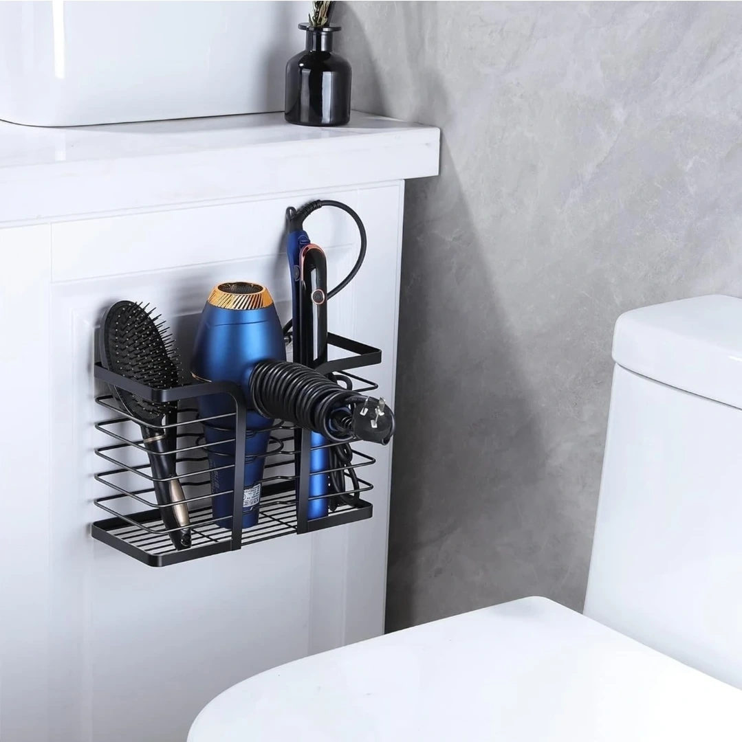 Keep your bathroom tidy with this YIGII hair dryer and tool organizer! It's a metal wire basket designed to mount on the wall or inside a cabinet door. Perfect for storing your hair dryer, flat iron, curling wand, and other styling tools. Colour is Black-b.