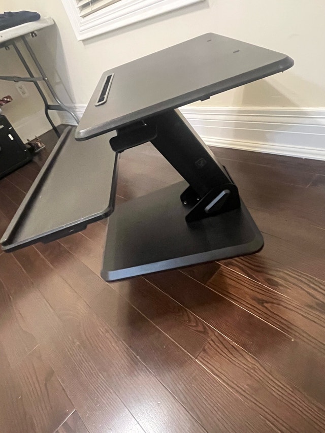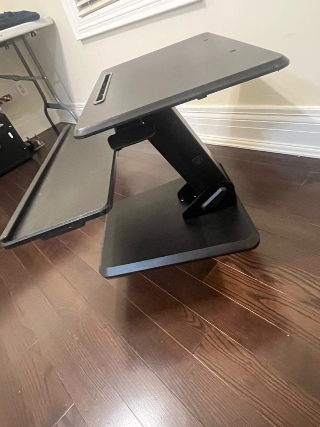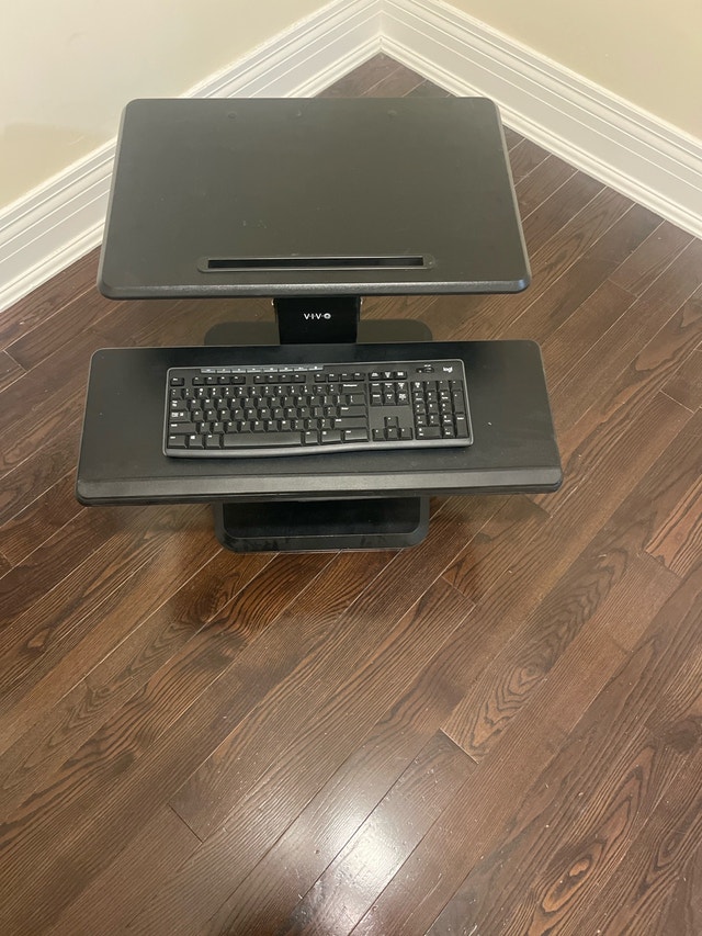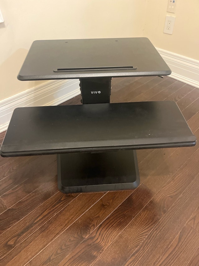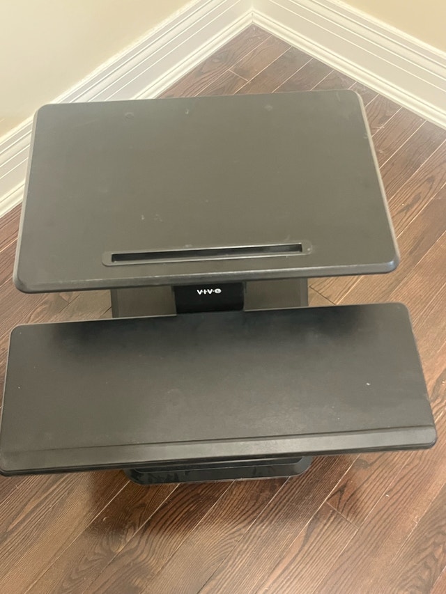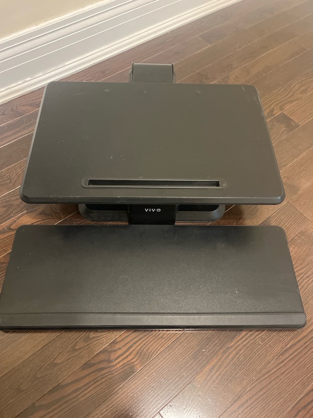 Upgrade your workspace with this VIVO standing desk converter. Dual-tier design lets you place your monitor/laptop up top and your keyboard/mouse below. Smooth lift mechanism makes switching between sitting and standing easy. Ideal for home offices or ergonomic setups.