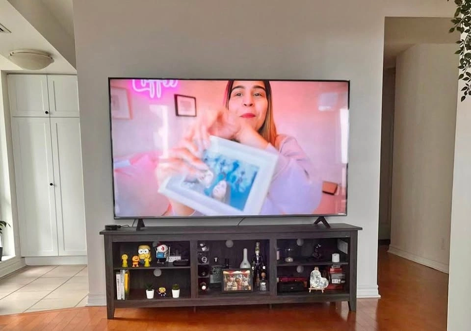 Wide tabletop fits TVs up to 75 inches