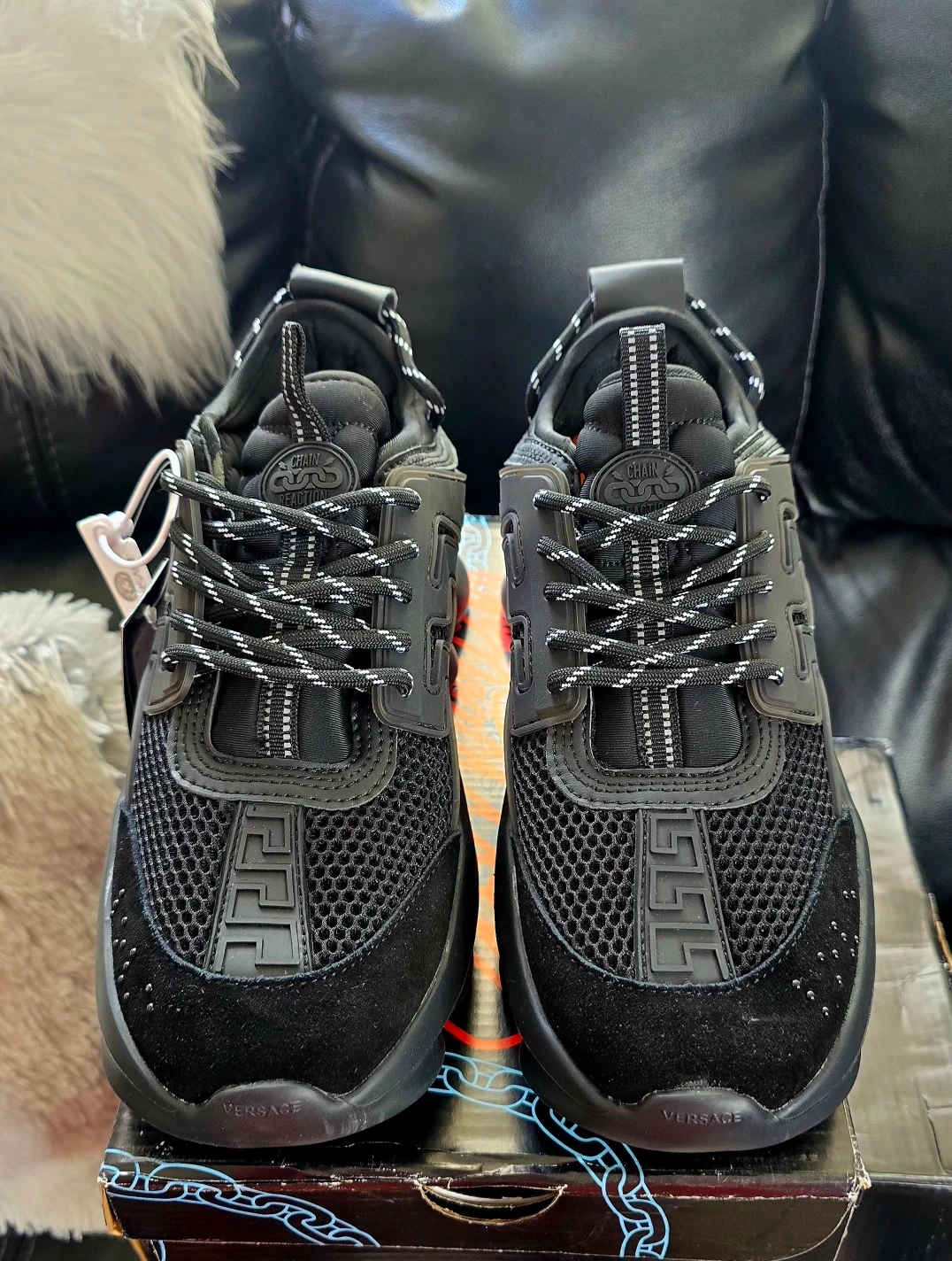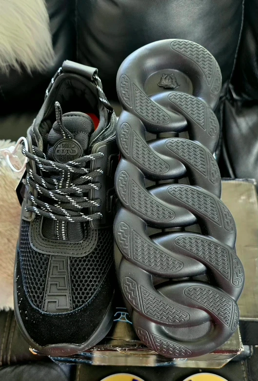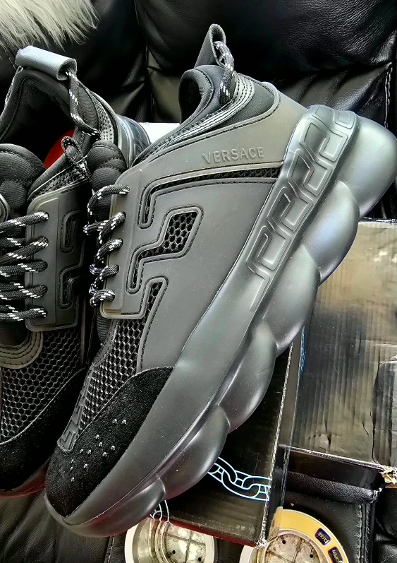 Brand new never used never worn Triple Black perfect for school black shoes rule Designed by Salehe Bembury with insights from 2 Chainz, the Versace Chain Reaction debuted at the houseโs FW18 presentation in Milan. Bold and uncompromising, the chunky silhouette is inspired by the Italian labelโs relationsh. Very comfortable and light weight sneakers real eyes catcher For more info contact me anytime