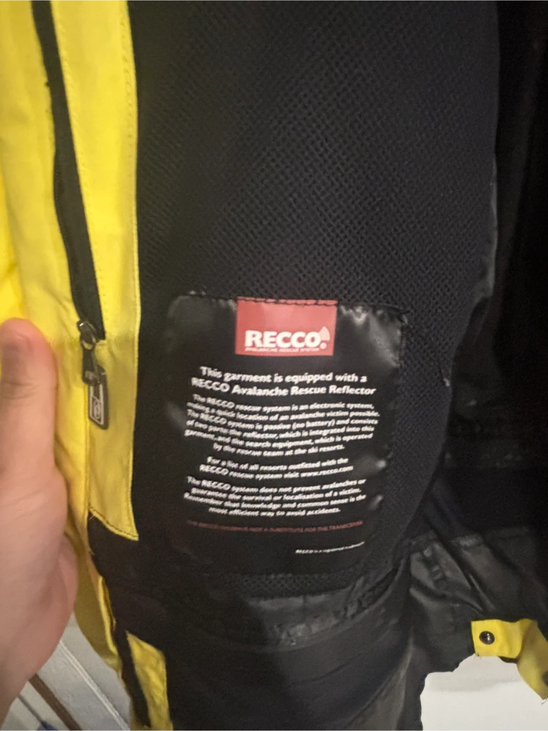 Selling a Rossignol ski jacket in bright yellow! It's a size L (US size). This jacket is equipped with a RECCO Avalanche Rescue Reflector, adding an extra layer of safety on the slopes. Perfect for hitting the mountains this winter season!