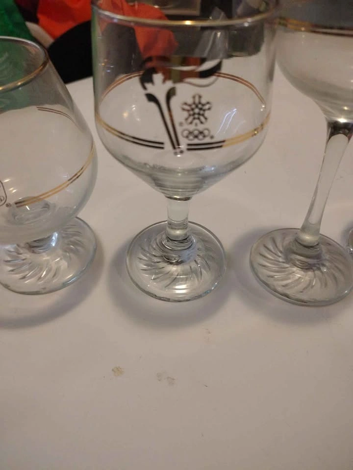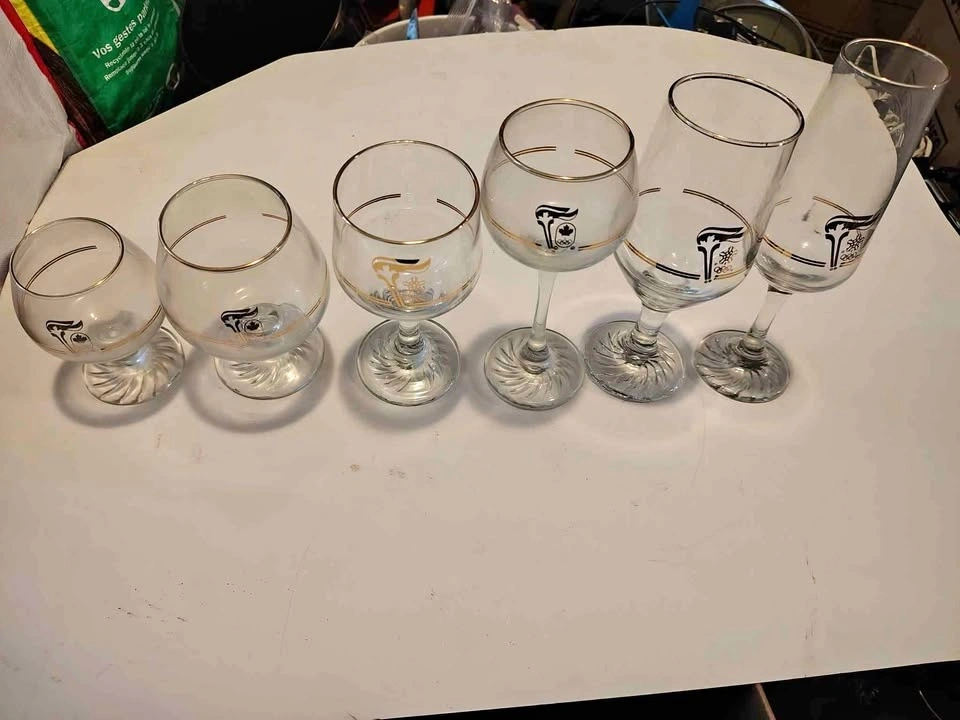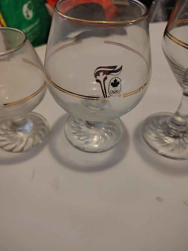 Calgary Olympics goldrimmed glassware