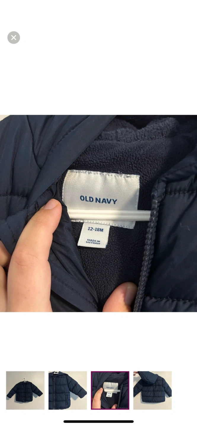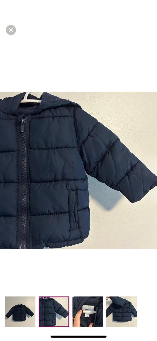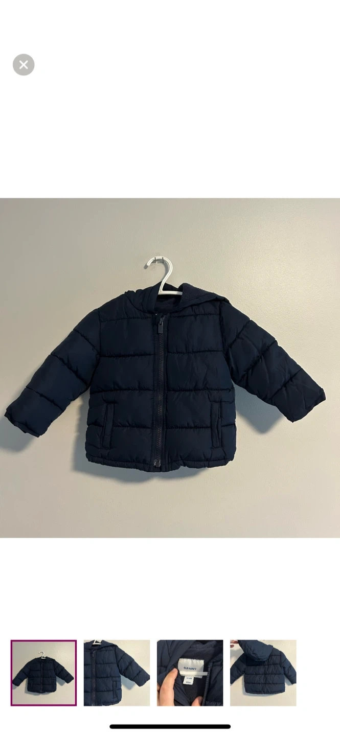 Old navy brand. Zip up hooded puffer jacket. Navy blue in colour. Size 12/18m. Brand new condition
