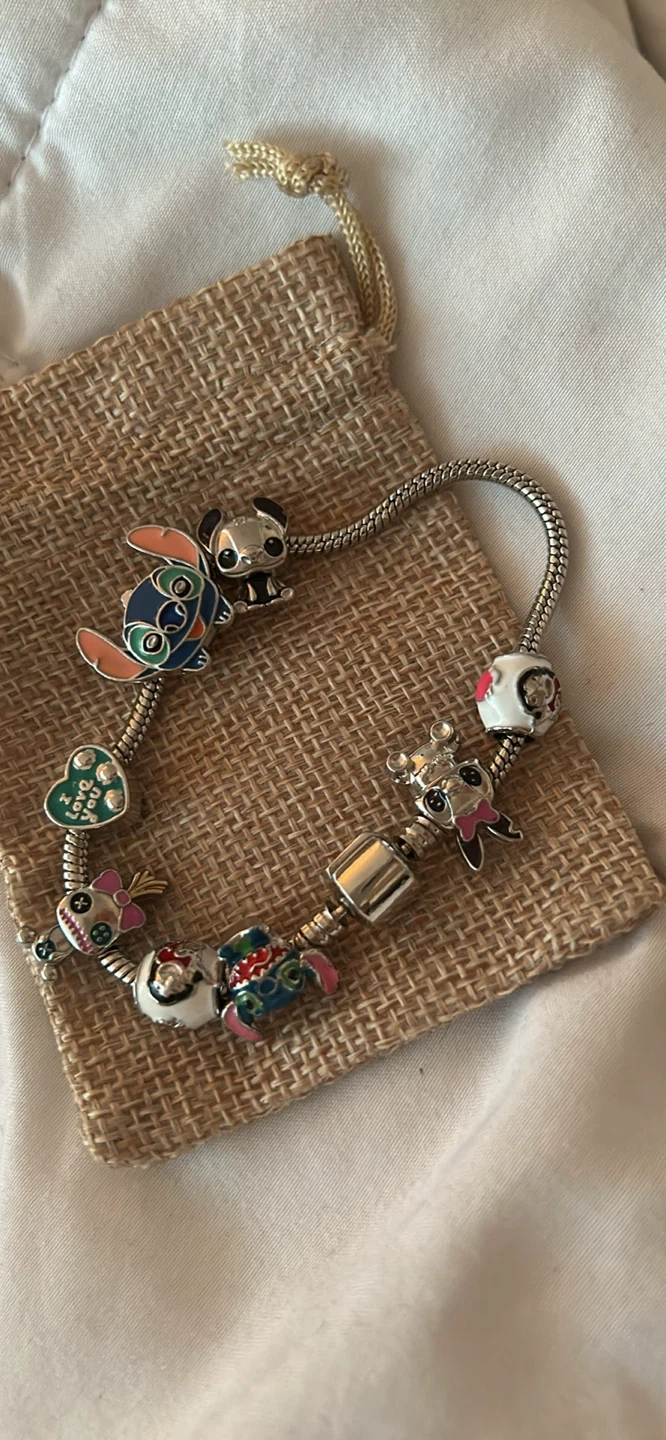 Selling a cute charm bracelet! It features a variety of Disney-themed charms, including Stitch. Perfect for any Disney fan!