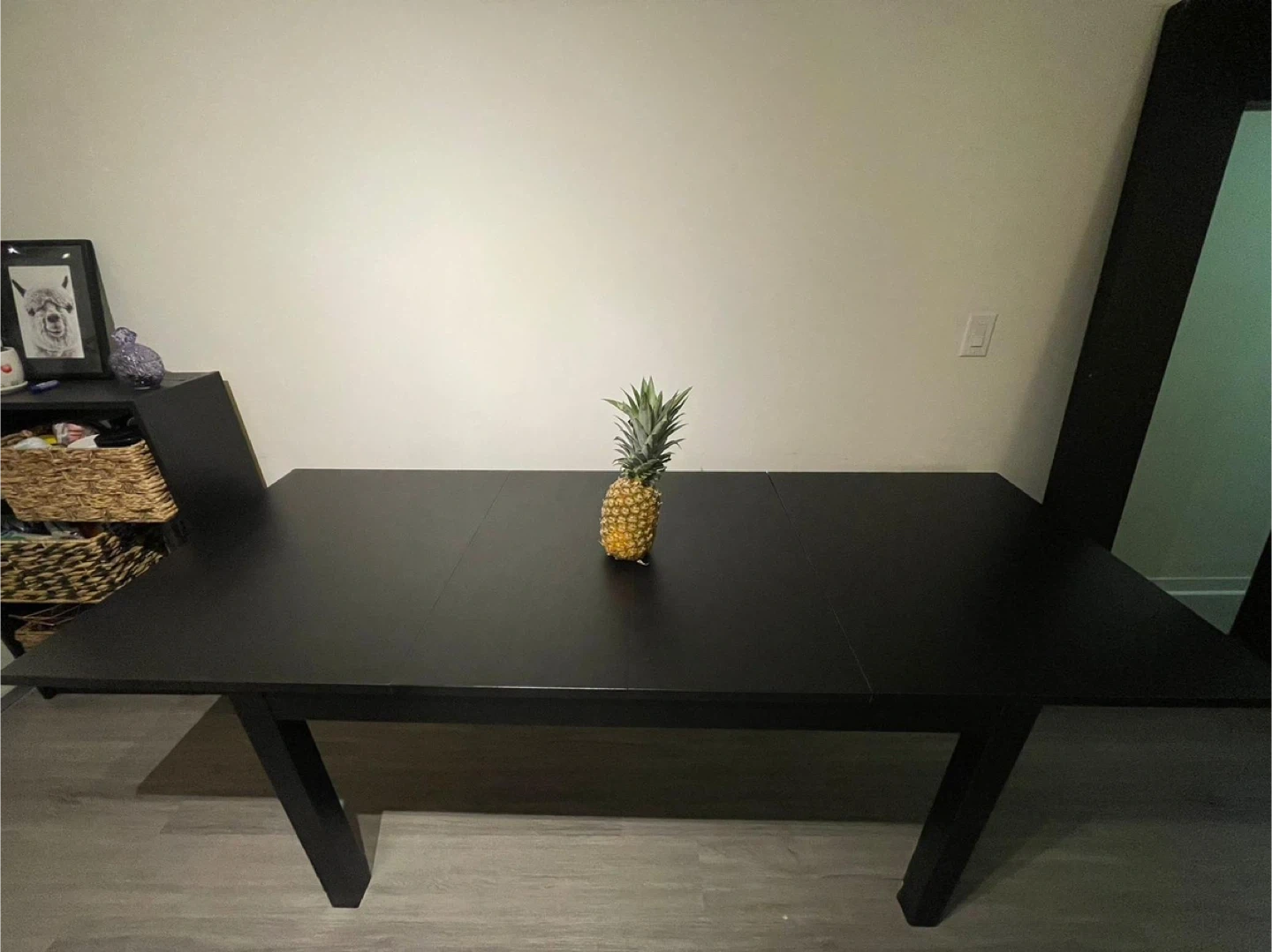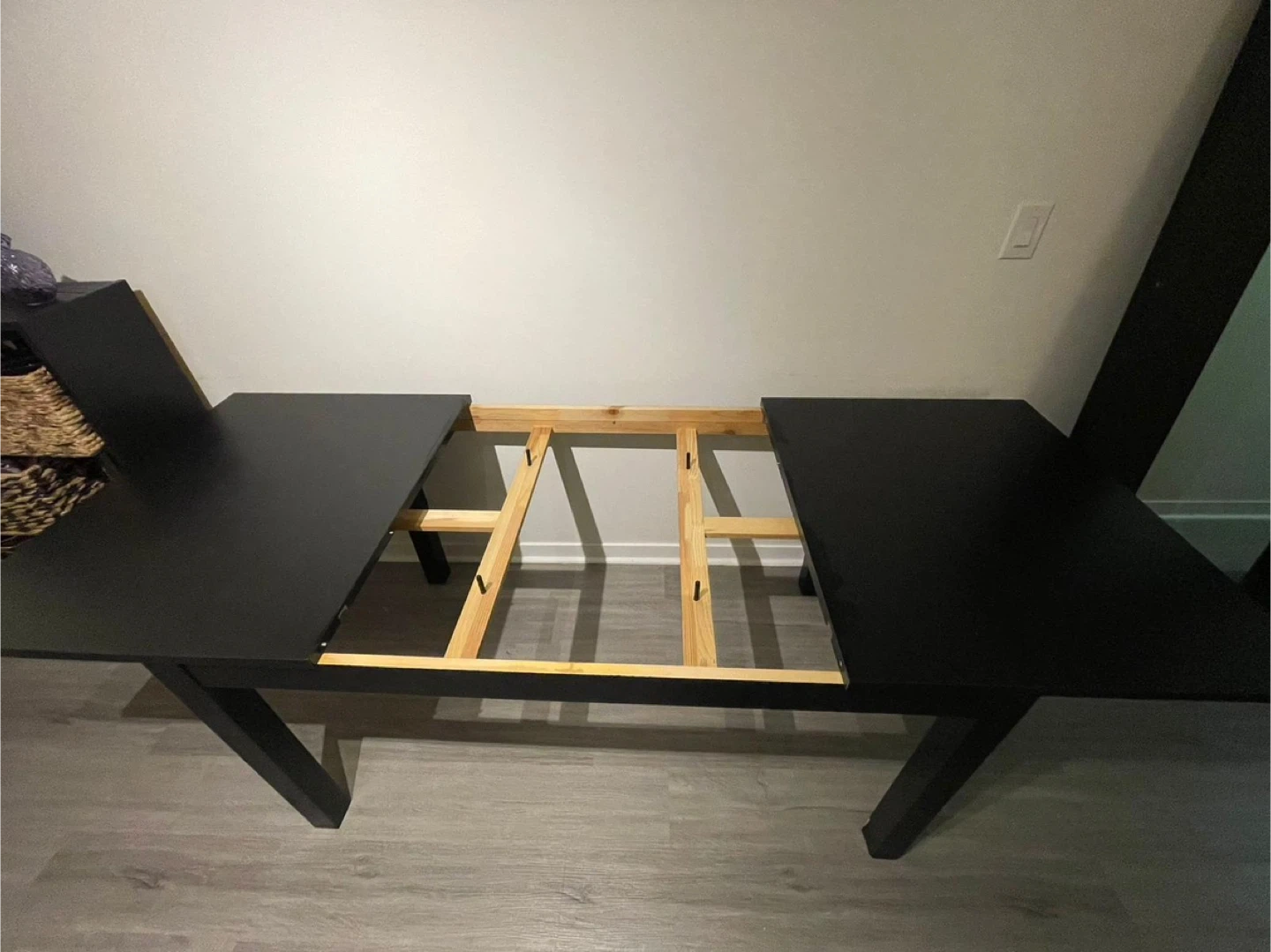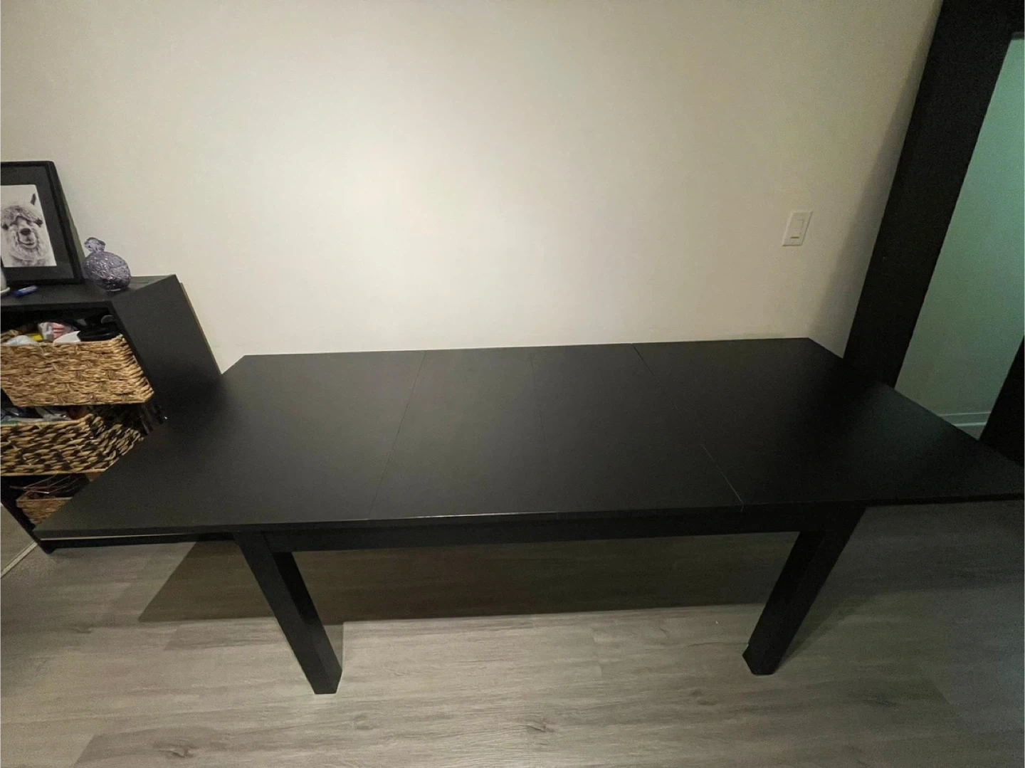 Selling a dark brown dining table that extends to accommodate more people! It's in great condition and perfect for family dinners or hosting friends. The extension mechanism works well , making it easy to adjust the table size as needed