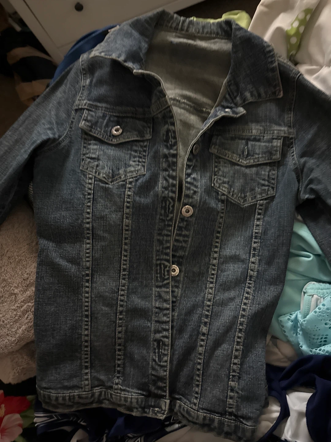 Here's a denim jacket, perfect for layering or adding a bit of edge to your outfit. It's a classic piece that goes with just about anything