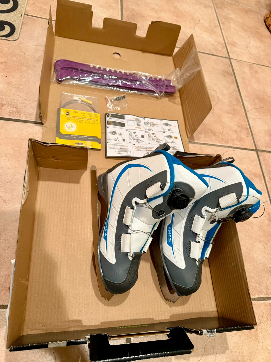 Selling a pair of Reebok BOA WM Rec skates for women! They are a size 7 US (37.5 EUR). The skates come with the original box and accessories. Perfect for recreational skating!