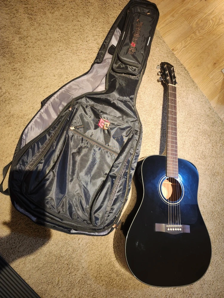 Selling a Fender acoustic guitar in black. It's in great shape and ready for a new owner to enjoy making music. Comes with a case for easy transport and storage