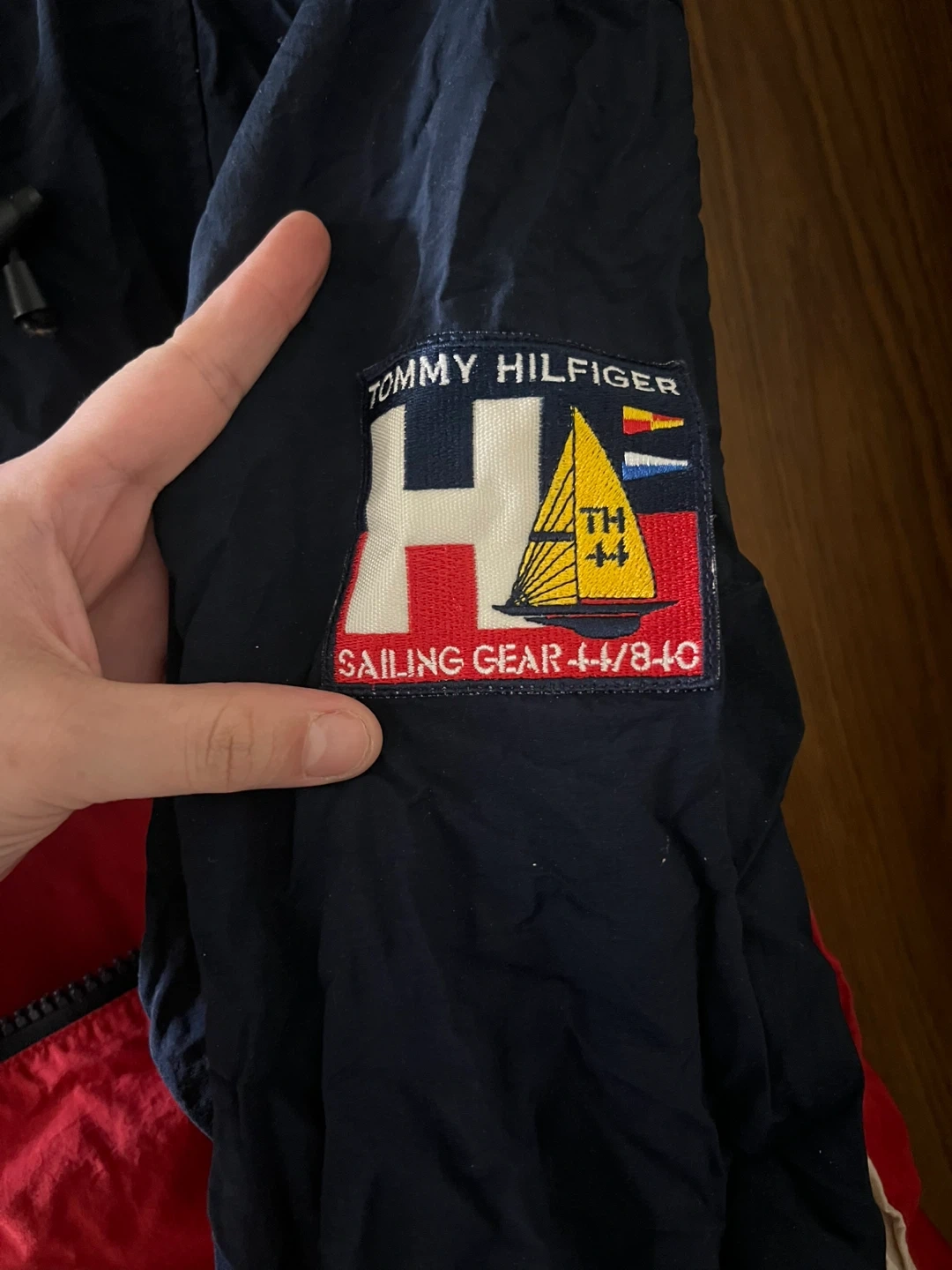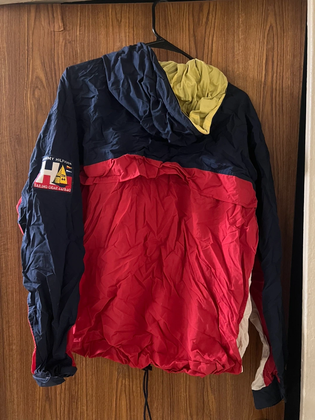 Vintage size XL Tommy Hilfiger Sailing jacket that I got from my stepdad. It turns into a bag! I really don’t wanna let it go, hence the price