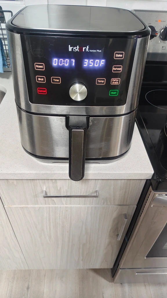 Selling an Instant Vortex Plus air fryer. It's in used condition, as you can see in the pictures, but still works great for cooking up your favourite snacks and meals. This air fryer is perfect for roasting, baking, reheating, broiling, and dehydrating!