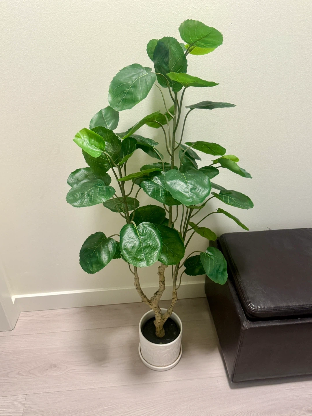 Selling a faux potted tree, perfect for adding a touch of greenery to your space without the upkeep! It's in great condition and comes in a white pot.