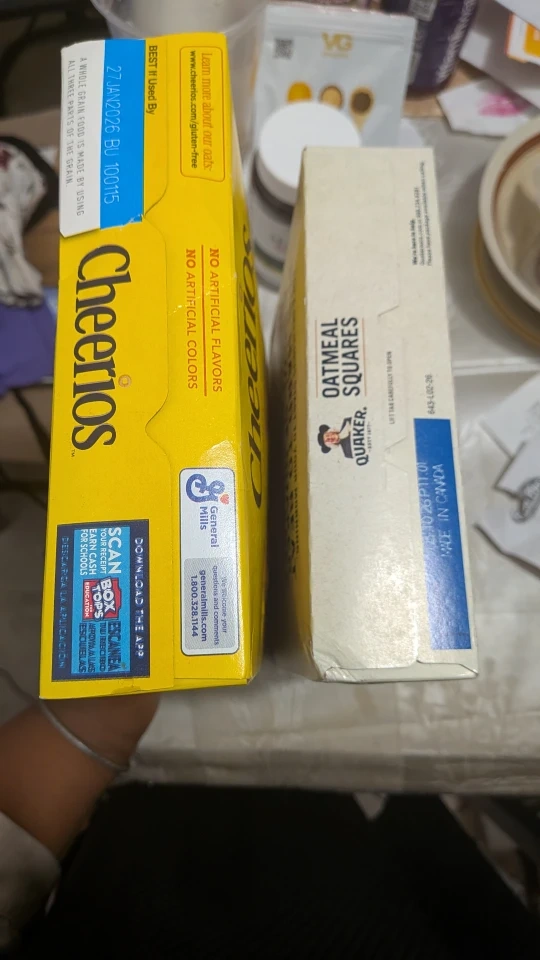 Selling two boxes of cereal! One box of Cheerios and one box of Quaker Oatmeal Squares. Both are unopened and ready for a new home. Purchased for someone and they did not show up!