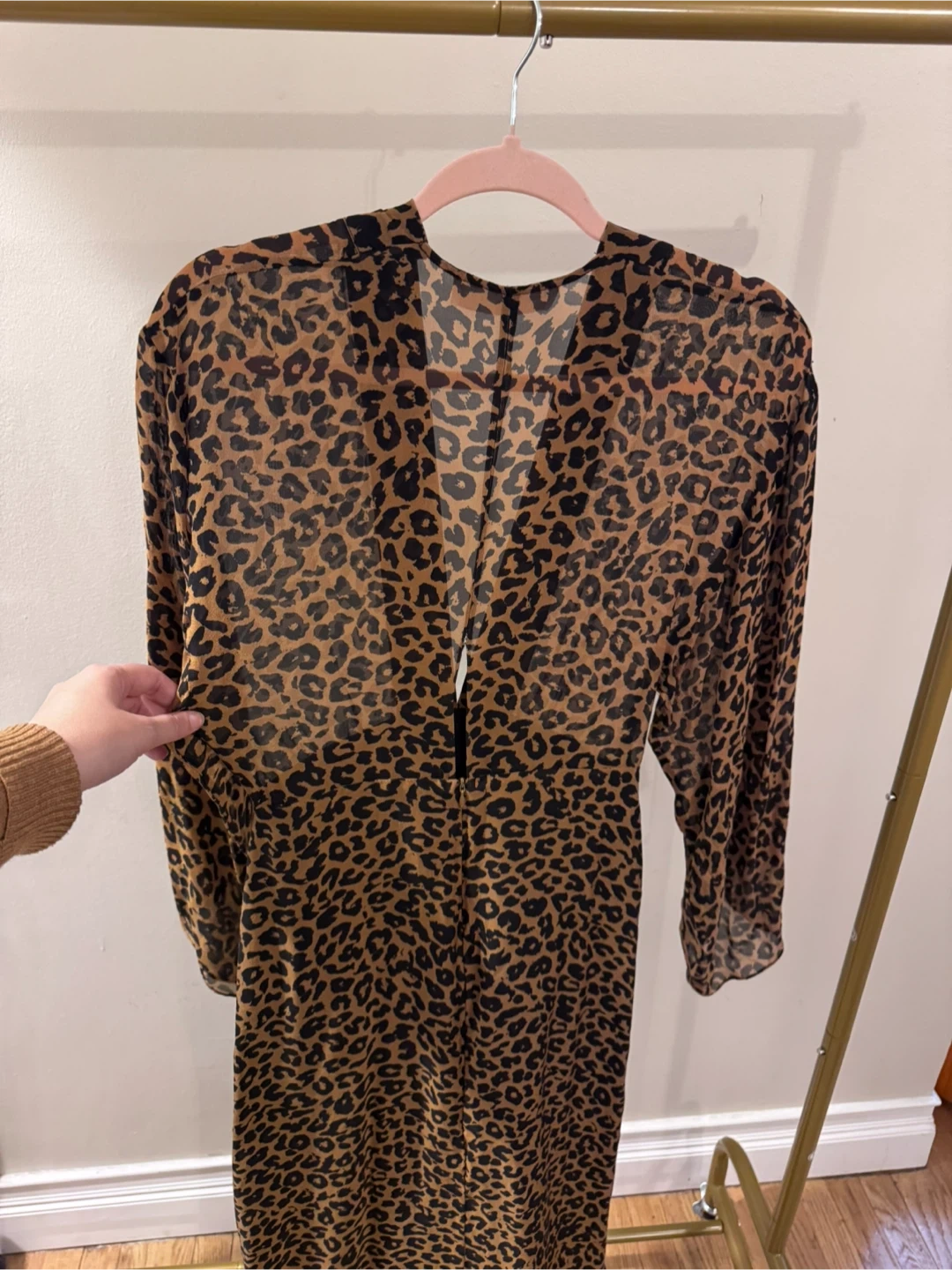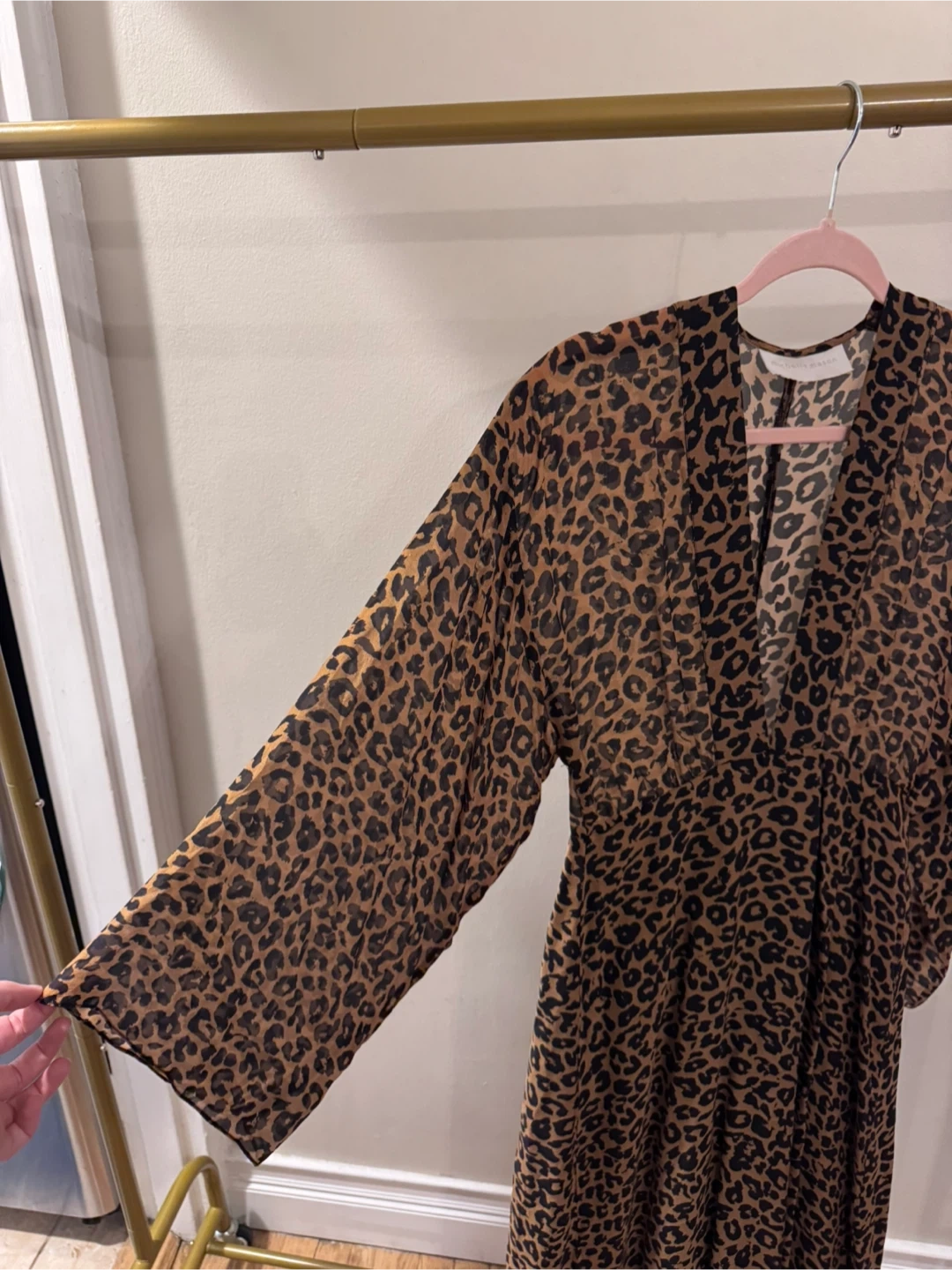 Selling a beautiful Michelle Mason maxi dress with a stylish leopard print. It features long sleeves and a flattering silhouette. Perfect for any occasion!
