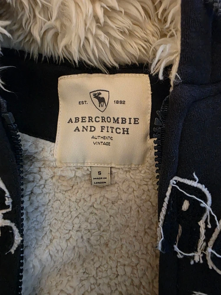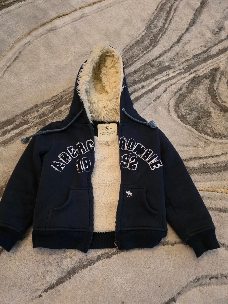 Here's a cozy Abercrombie & Fitch kids' hoodie, perfect for keeping warm! It's a size small and features a sherpa lining for extra comfort. The hoodie is in great condition and ready for a new home!