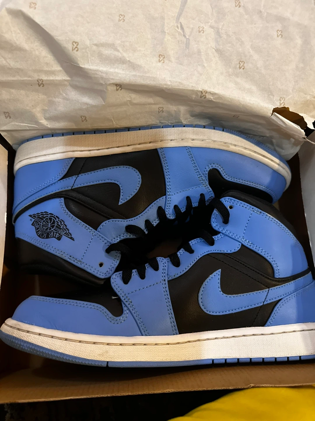Selling a pair of Air Jordan 1 Mid in the University Blue colourway! They are in good condition and come with the original box. A classic shoe for any sneakerhead!