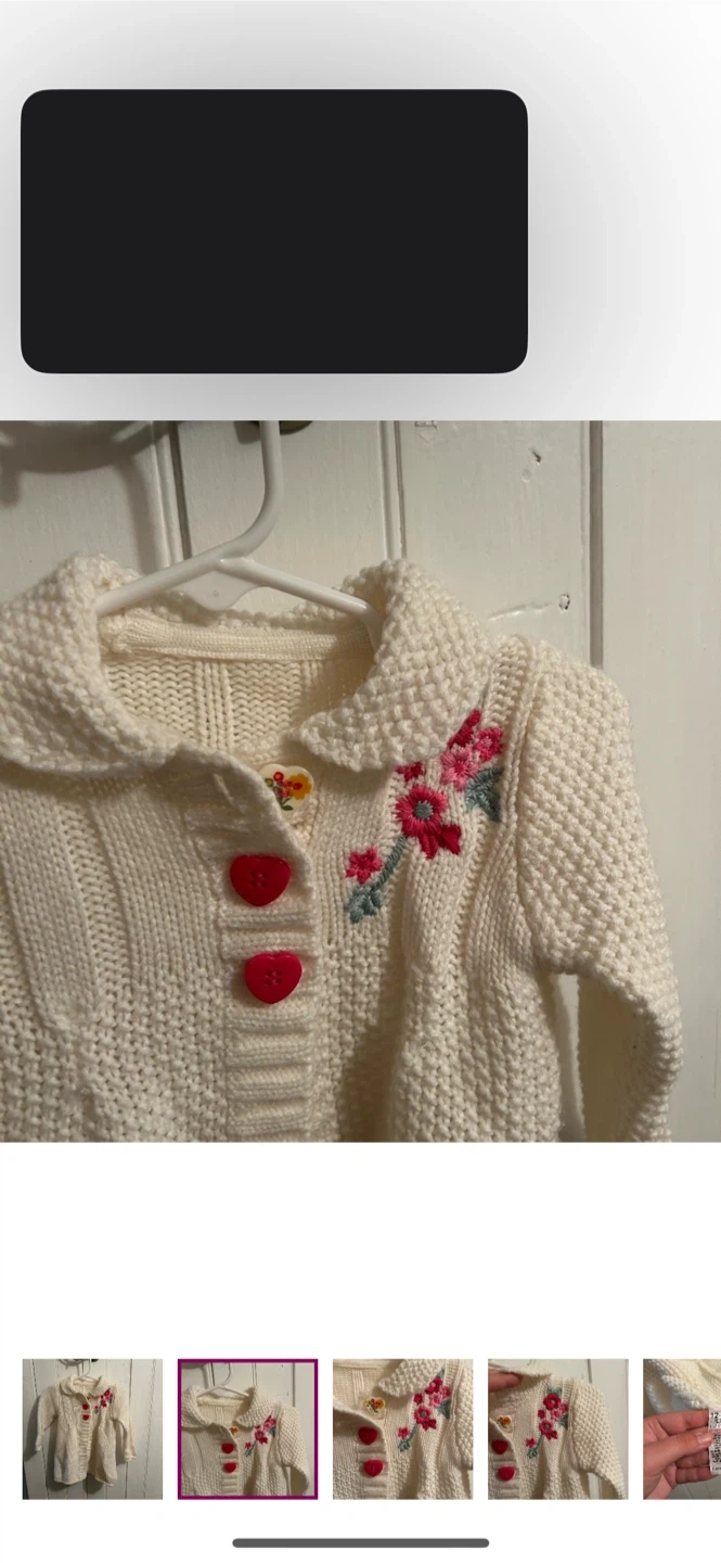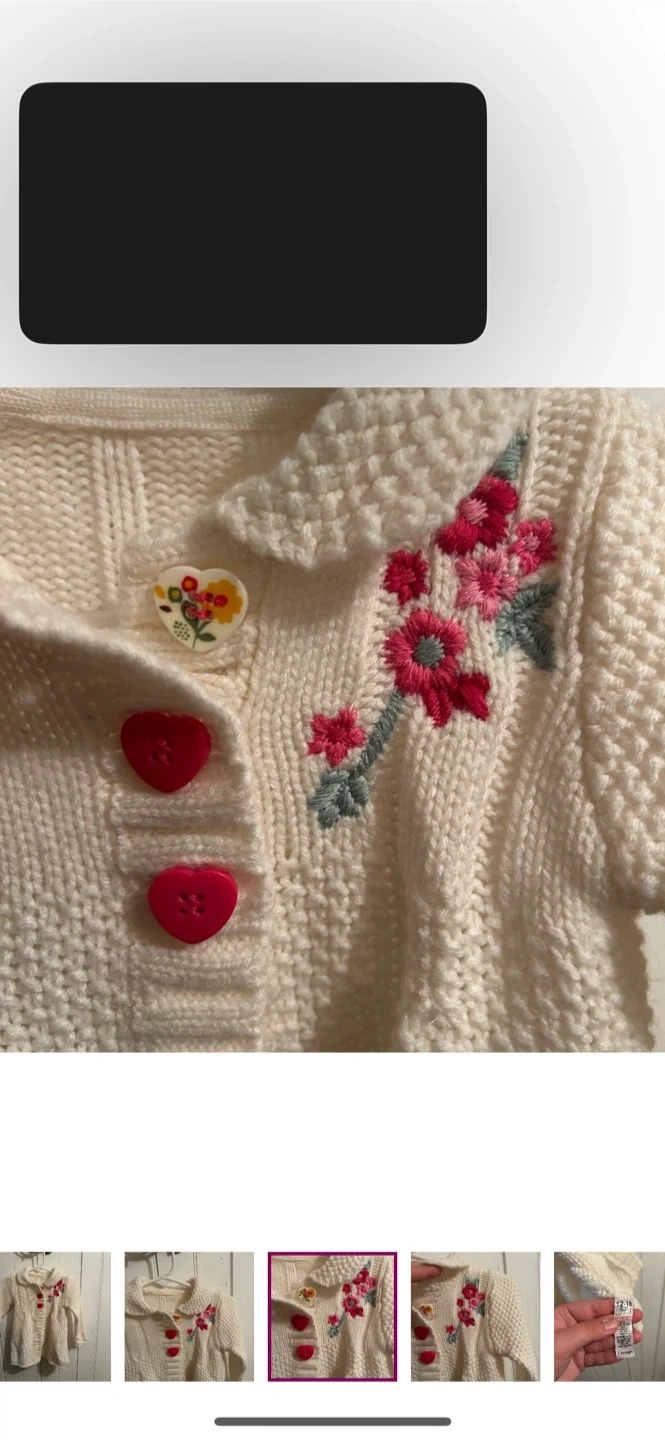 George brand. Three button down knit cardigan. White with pink embroidered floral accent. Size 12/18m. Brand new condition