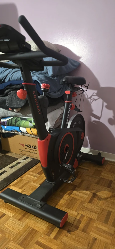 Selling an Echelon Connect exercise bike in good condition! It's perfect for getting a great workout at home. The bike is black and red and features the Echelon branding prominently. It's a great way to stay active, especially with the weather getting colder