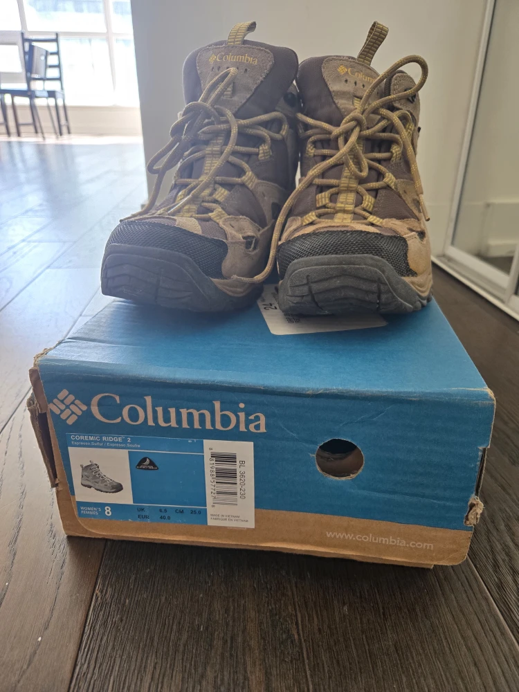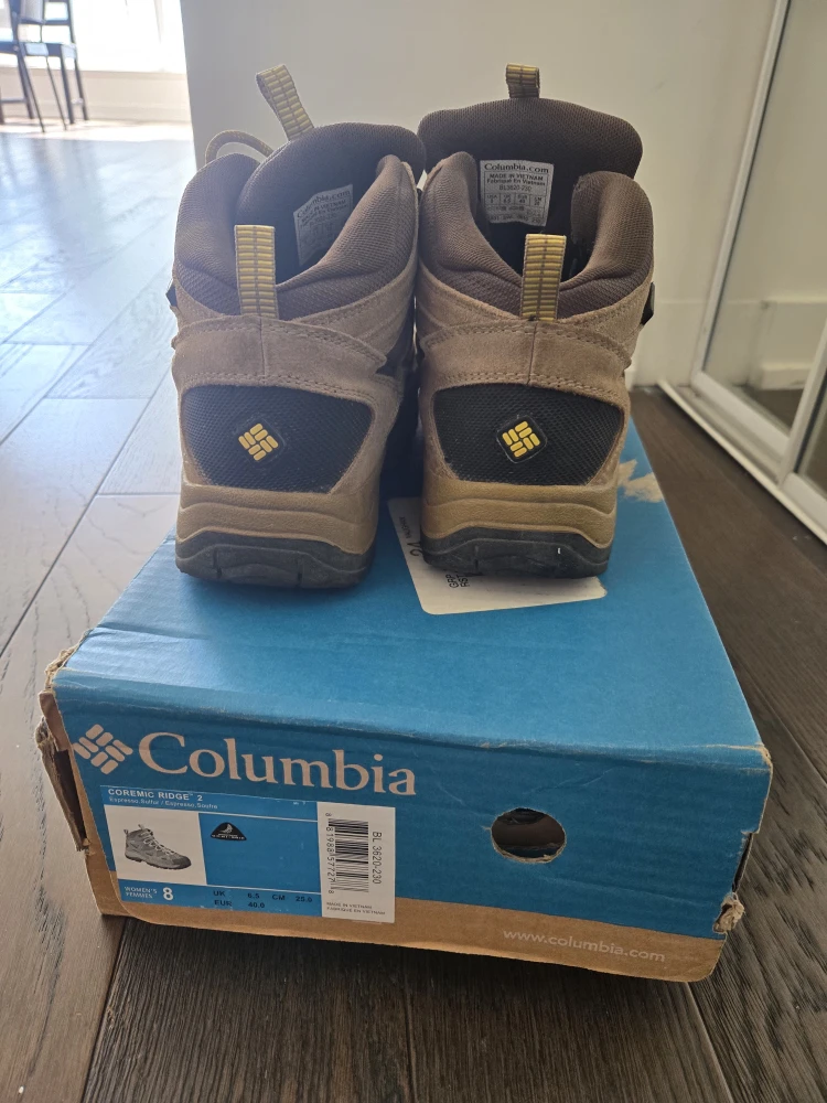Selling a pair of Columbia CoreMic Ridge 2 women's hiking boots in size 8. They're in good condition and come with the original box. Perfect for hitting the trails!