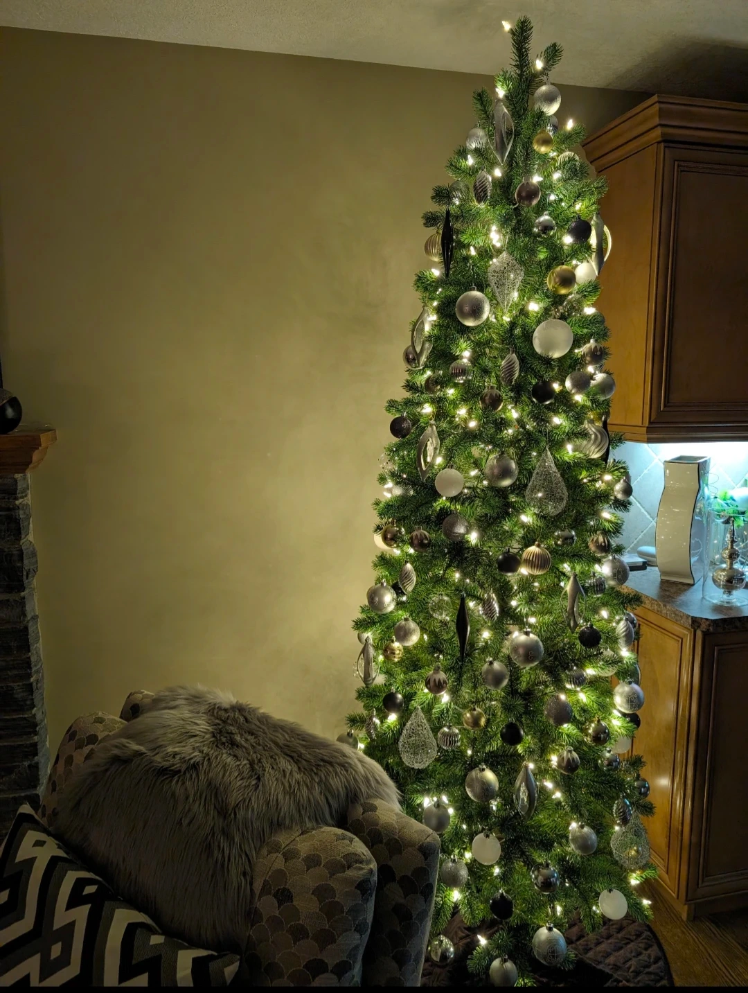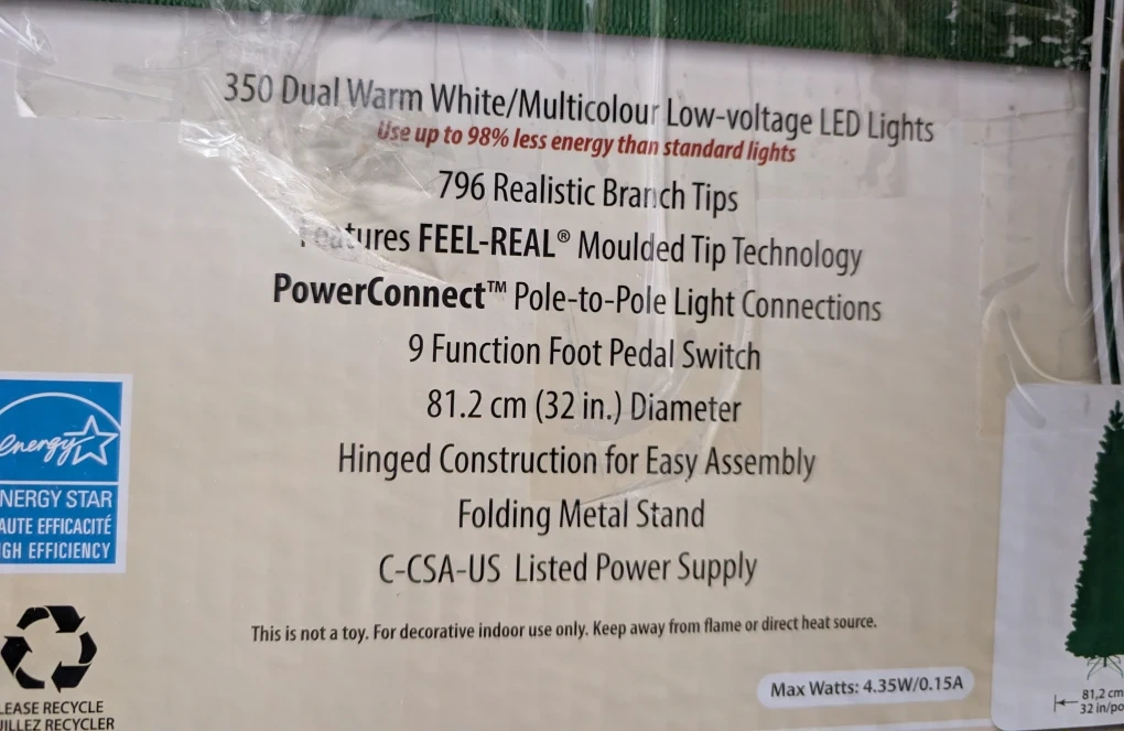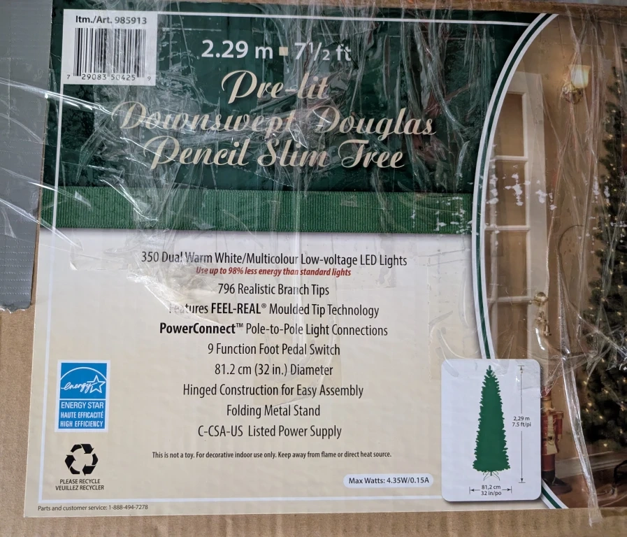 This lovely "Downswept" Douglas Fir, Pencil Slim tree has BOTH alternating MULTI-COLOUR and WARM WHITE lights with a foot pedal switch for 9 different functions/settings to please all of your family members and their differing opinions! π
